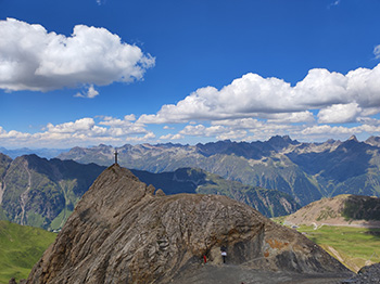 Da hat es in meinem Kopf einen Schalter umgelegt. Auf einmal konnte ich nochmal richtig Druck auf das Pedal geben und das Fahrrad nochmal fliegen lassen. So hatte ich dann auch die Bergstation der Seilbahn erreicht. Hier habe ich nochmal kurz eine letzte Verpflegung zu mir genommen, bevor es an die finalen Höhenmeter zum Velilpass ging. Kurz hatte ich überlegt, ob ich nicht doch noch auf die Hard Distanz wechseln soll, nochmal 400 Höhenmeter mehr. Ich entschied mich aber dagegen und blieb auf der Medium Strecke. Also hoch zum Velilpass und dann nur noch der Trail runter nach Ischgl. Im Anstieg zum Pass konnte ich nochmal einen Teilnehmer hinter mir lassen. Oben angekommen gab es nochmal einen letzten Blick auf das großartige Alpenpanorama, bevor es dann mit einem Freudenschrei ab in die Abfahrt auf den Veliltrail ging. In der Abfahrt konnte ich nochmal vier Teilnehmer überholen und bis zum Ziel auf über 2 Minuten auf mich distanzieren. Im Ziel angekommen war ich überglücklich und war auch sehr Happy mit meiner Platzierung, 5. Platz in meiner Altersklasse und 17. Gesamt. Das einzig negative war, ich dachte mir „Mist, heute wäre von der Leistung auch die Hard dring gewesen“.