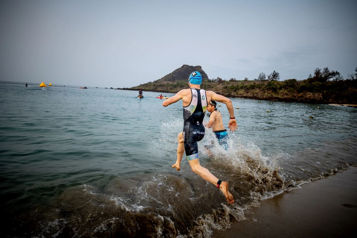 Ich konnte im Training meine Schwimmtechnik etwas verbessern und kam im Rennen als 12. aus dem Wasser – ein super Ausgangspunkt für den MTB-Teil. Somit war es an der Zeit auf dem Rad so richtig Gas zu geben. 2 Flaschen nahm ich mit, um in der Hitze gut hydriert zu bleiben. Soweit, so gut, alles lief nach Plan – nur die Beine hatten nicht genung Kraft für die steilen Anstiege in Taiwan. Trotz alledem war meine Zeit am Fahrrad solide.