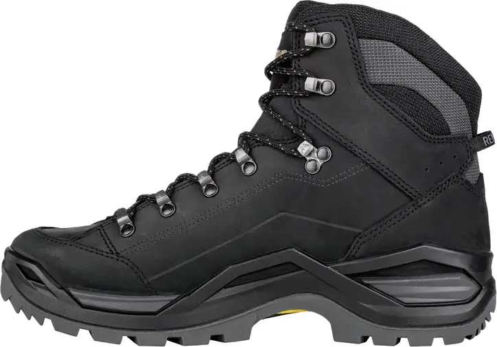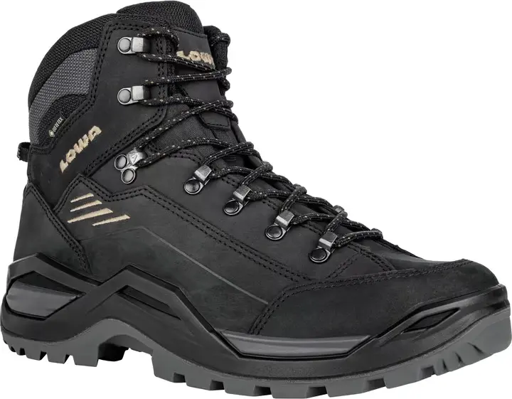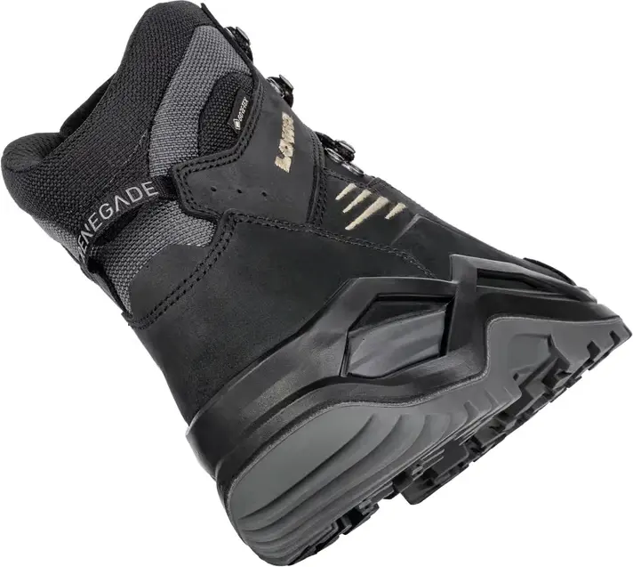 Über Jahrzehnte stand der RENEGADE genau für ein Attribut: die perfekte Passform. Um diesen Aspekt weiter auszubauen, wurde der neue RENEGADE EVO GTX MID um einige spezifische Details ergänzt. So wurde zum Beispiel am Schaft auf zusätzlichen Komfort geachtet, indem die Innenseite des Vorfußbereichs komplett aus einem Stück gefertigt wurde. Durch den Verzicht auf überflüssige Nähte kann sich das hier verarbeitete Nubukleder flexibel an die individuelle Form der Fußknochen anpassen, um Reibung zu verhindern und das Großzehengelenk zu entlasten. Hierzu trägt auch die Zwei-Zonen-Schnürung bei, die sich jetzt dank neu gestalteter Klemmhaken noch leichter an die individuellen Anforderungen anpassen lässt. Zusätzlichen Komfort bietet die wasserdichte und atmungsaktive GORE-TEX-Membran. Darüber hinaus verfügt der neue RENEGADE über ein neu gestaltetes Sohlenpaket. Die direkt angespritzte Zwischensohle besteht hier aus zwei Dämpfungsteilen. Der erste Teil besteht aus LOWA® DYNAPU®, beim zweiten Teil handelt es sich um einen festeren Teil, der zusammen mit dem CROSS OVER FRAME für eine optimale Führung sorgt. Für ordentlich Grip sorgt die neue VIBRAM RENE TRAC®.