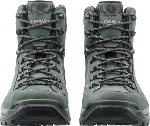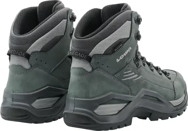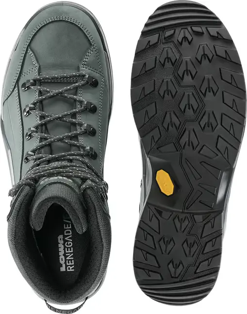 Über Jahrzehnte stand der RENEGADE genau für ein Attribut: die perfekte Passform. Um diesen Aspekt weiter auszubauen, wurde der neue RENEGADE EVO GTX MID um einige spezifische Details ergänzt. So wurde zum Beispiel am Schaft auf zusätzlichen Komfort geachtet, indem die Innenseite des Vorfußbereichs komplett aus einem Stück gefertigt wurde. Durch den Verzicht auf überflüssige Nähte kann sich das hier verarbeitete Nubukleder flexibel an die individuelle Form der Fußknochen anpassen, um Reibung zu verhindern und das Großzehengelenk zu entlasten. Hierzu trägt auch die Zwei-Zonen-Schnürung bei, die sich jetzt dank neu gestalteter Klemmhaken noch leichter an die individuellen Anforderungen anpassen lässt. Zusätzlichen Komfort bietet die wasserdichte und atmungsaktive GORE-TEX-Membran. Darüber hinaus verfügt der neue RENEGADE über ein neu gestaltetes Sohlenpaket. Die direkt angespritzte Zwischensohle besteht hier aus zwei Dämpfungsteilen. Der erste Teil besteht aus LOWA® DYNAPU®, beim zweiten Teil handelt es sich um einen festeren Teil, der zusammen mit dem CROSS OVER FRAME für eine optimale Führung sorgt. Für ordentlich Grip sorgt die neue VIBRAM RENE TRAC®.