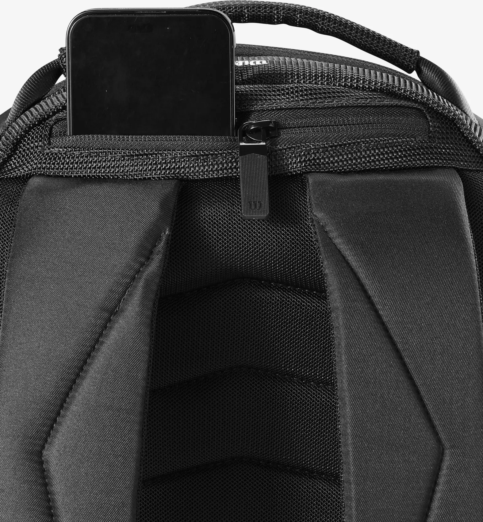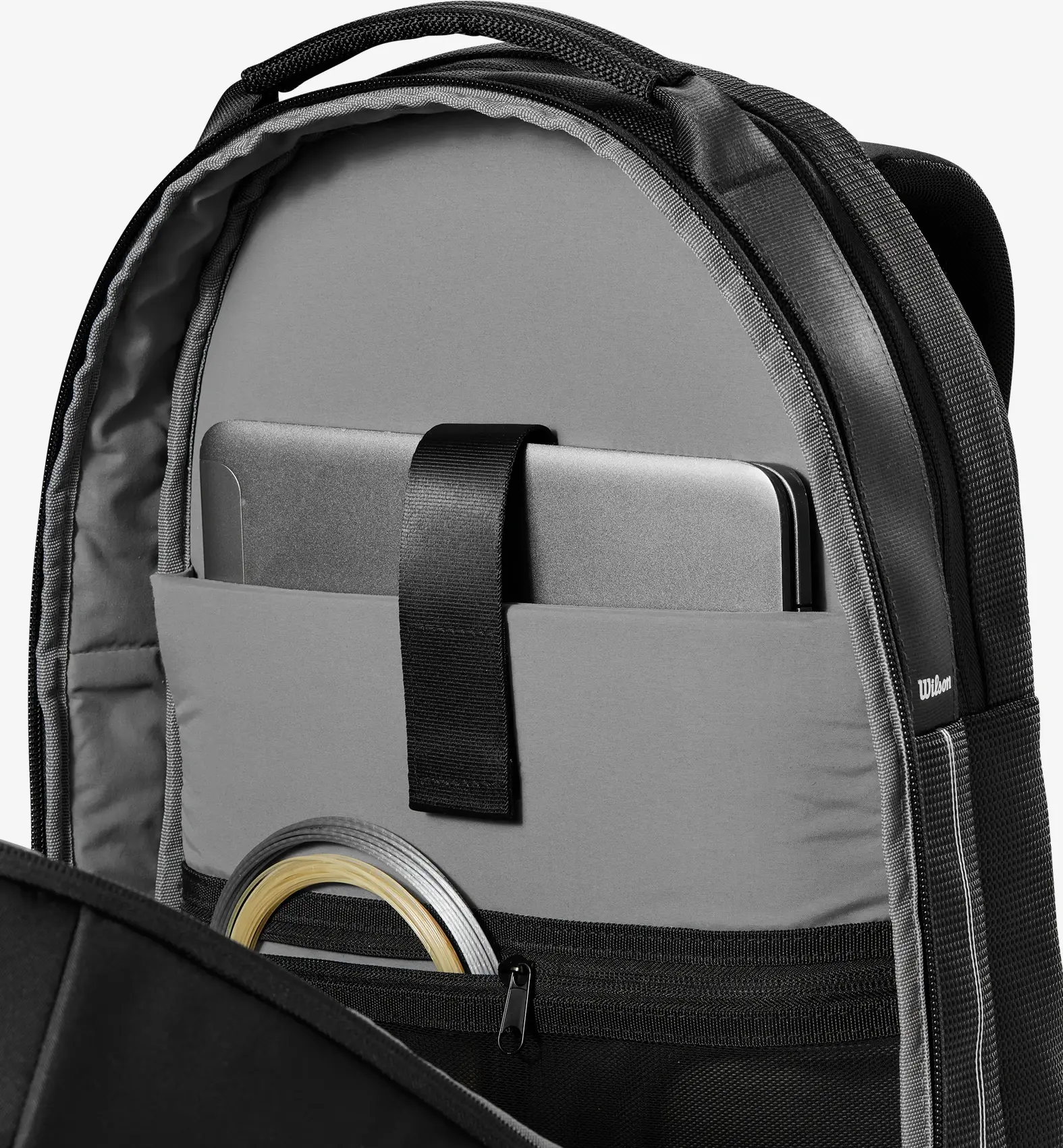 Mit dem Wilson RF-Rucksack hält Leichtigkeit Einzug beim Training und auf Reisen. Das Design mit den majestätischen Schweizer Alpen durchzieht die gesamte Roger Federer-Kollektion. Diese Nadelstreifen-Tasche hat eine weich gepolsterte Rückenfläche. Der Riemen zum Befestigen am Gepäck erleichtert den Transport. Sie bietet Platz für zwei Schläger, hat ein Schuhfach und eine Fleece-gefütterte Zubehörtasche für kleine Wertsachen. Ein RF-Logo und Reißverschlussschieber mit RF-Details signalisieren die Hochachtung vor dem 20-fachen Grand-Slam-Sieger.