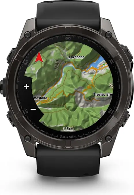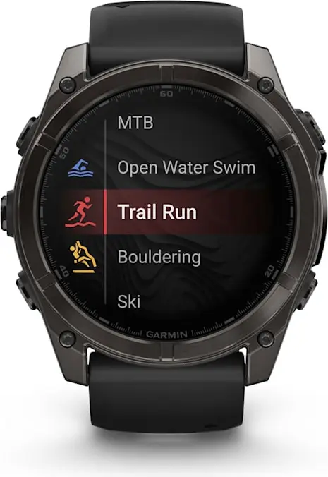 Das hochwertige Design der fēnix® 8 macht alles mit. Es ist für das Tauchen geeignet, hat wasserdichte Tasten, einen Sensorschutz aus Metall und ein helles 1,4-Zoll AMOLED-Touchdisplay. Es gibt sogar Versionen mit kratzfestem Sapphire Glass und einer Titan-Lünette. Die Smartwatch wurde nach US-Militärstandards im Hinblick auf thermische Leistung, Stoßfestigkeit und Wasserdichtigkeit getestet.