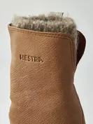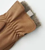 Eingeprägtes Hestra-Logo oben am Handgelenk.