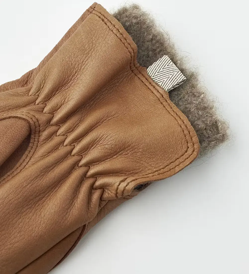 Zeitloser Fausthandschuh aus Hirschleder mit herausnehmbarem Wollfutter. Ein schönes und wärmendes Damenmodell mit fein ausgearbeiteten Details und rustikaler, natürlicher Textur. Das Hirschleder isoliert gut und ist zugleich weich und geschmeidig. Der Innenfäustling ist aus einem weichen, wärmenden Garn unter anderem aus Yakwolle und Alpaka gestrickt. Ideal für etwas kühle Herbst- und Wintertage und passend für elegante ebenso wie für legere Outfits.