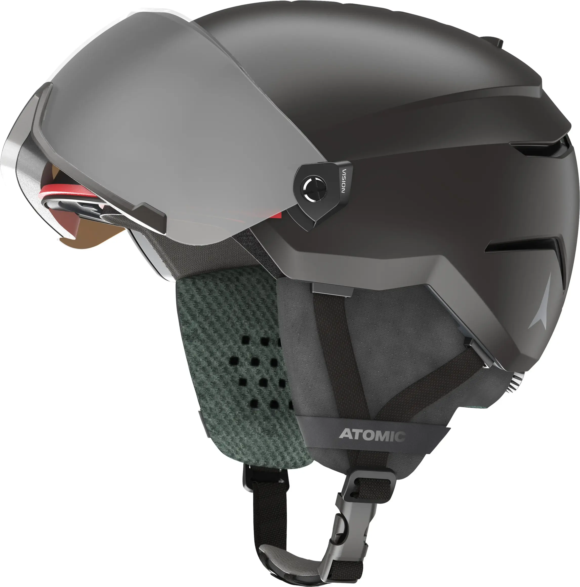 Der Atomic Savor Visor JR ist unser Kids-Modell, das einen hochwertigen Helm und eine Premium Skibrille vereint. Er ist unglaublich bequem zu tragen, und zwar dank Live Fit, der sich an den Kopf anpasst, dem bequemen Ear Fit System, das Wind abhält, und dem höhenverstellbaren 360° Fit System. In puncto Sicherheit bietet das Herzstück des Helms, der einzigartige Holo Core, bis zu 30% höheren Aufprallschutz, als die Industrie-Sicherheitsnorm fordert, zugleich ist der Helm dadurch leicht und sorgt für einen kühlen Kopf. Der Visor ist verstellbar, sodass Kids ihre optische Brille darunter tragen können. Und das Beste: Erstmals können jetzt selbst die zerstreutesten Youngster ihre Skibrille nicht mehr zu Hause vergessen!