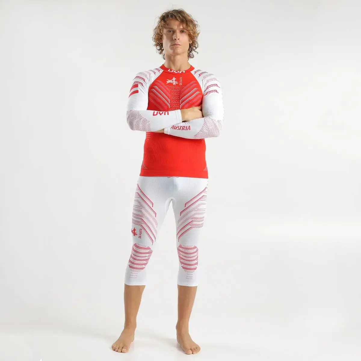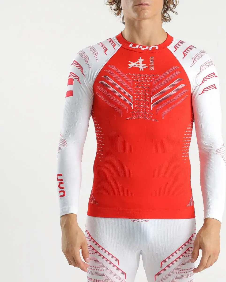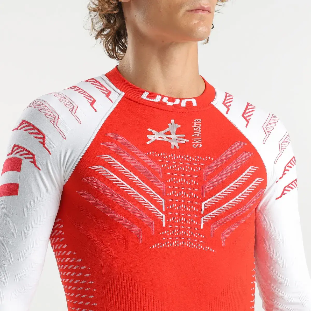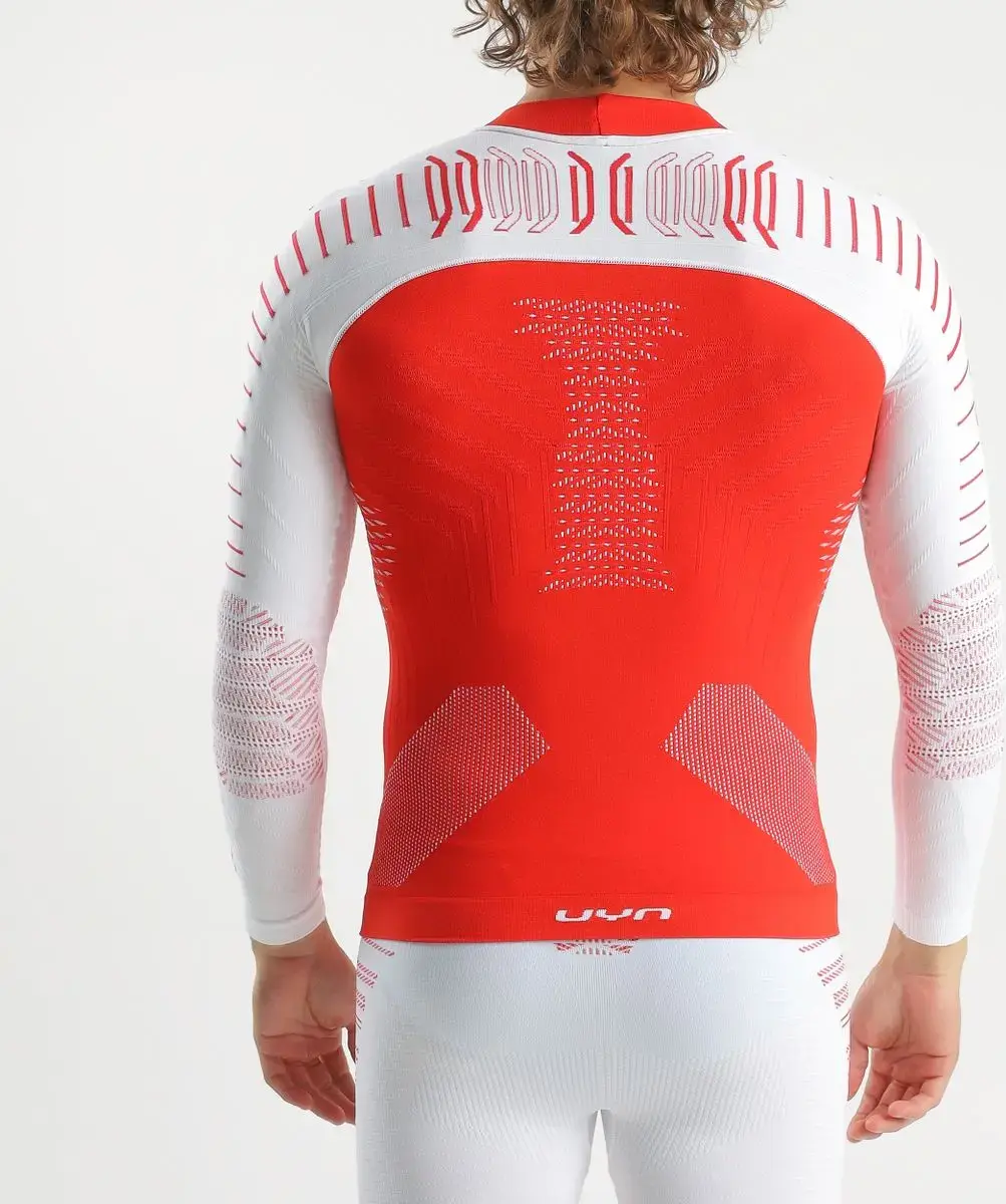 Die Evolution einer Ikone. Die von den besten Nationalmannschaften der Welt getestete und empfohlene UYN-Unterwäsche wird noch leistungsfähiger. In der neuen Version des UYN NATYON Trikots haben wir dank eines neuen Designs und der Verwendung des biobasierten Garns Natex das Gewicht im Vergleich zum Vorgängermodell um 34% reduziert. Gleichzeitig konnten wir die Elastizität um 4% erhöhen, um eine noch größere Bewegungsfreiheit zu ermöglichen. Die atmungsaktive Oberfläche der Gradual Coolvent Technologie hat sich um 58% vergrößert, und zwar an Brust, Rücken und Unterarm. So bleibt der Körper auch bei den anstrengendsten Rennen trocken und die Temperatur stabil. Tests im Labor und auf der Skipiste haben uns veranlasst, neue Funktionen einzuführen, wie Meta-Ribs an den Schultern, die die Schultermuskulatur stabilisieren und unterstützen, und Pressure Branches an den Ellbogen, die die Gelenke schützen und entlasten. Die gezielte Kompression, die an den Extremitäten noch intensiver ist, fördert die Blutzirkulation und verringert die Ermüdung.