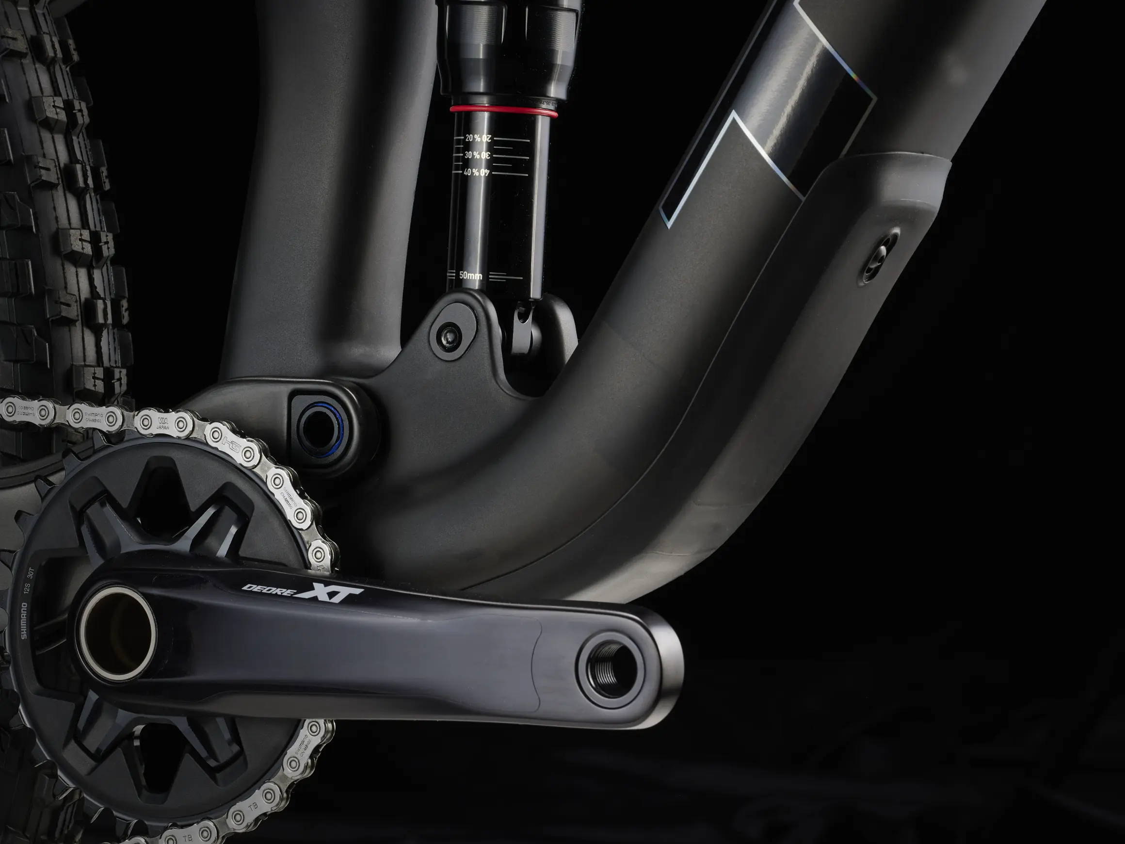 Rahmenset OCLV Mountain Carbon, internes Staufach, konisches Steuerrohr, Knock Block 2.0, geführte interne Zugverlegung, Unterrohrschutz, Magnesiumumlenkhebel, Mino Link, ABP, Boost148, 120 mm Federweg