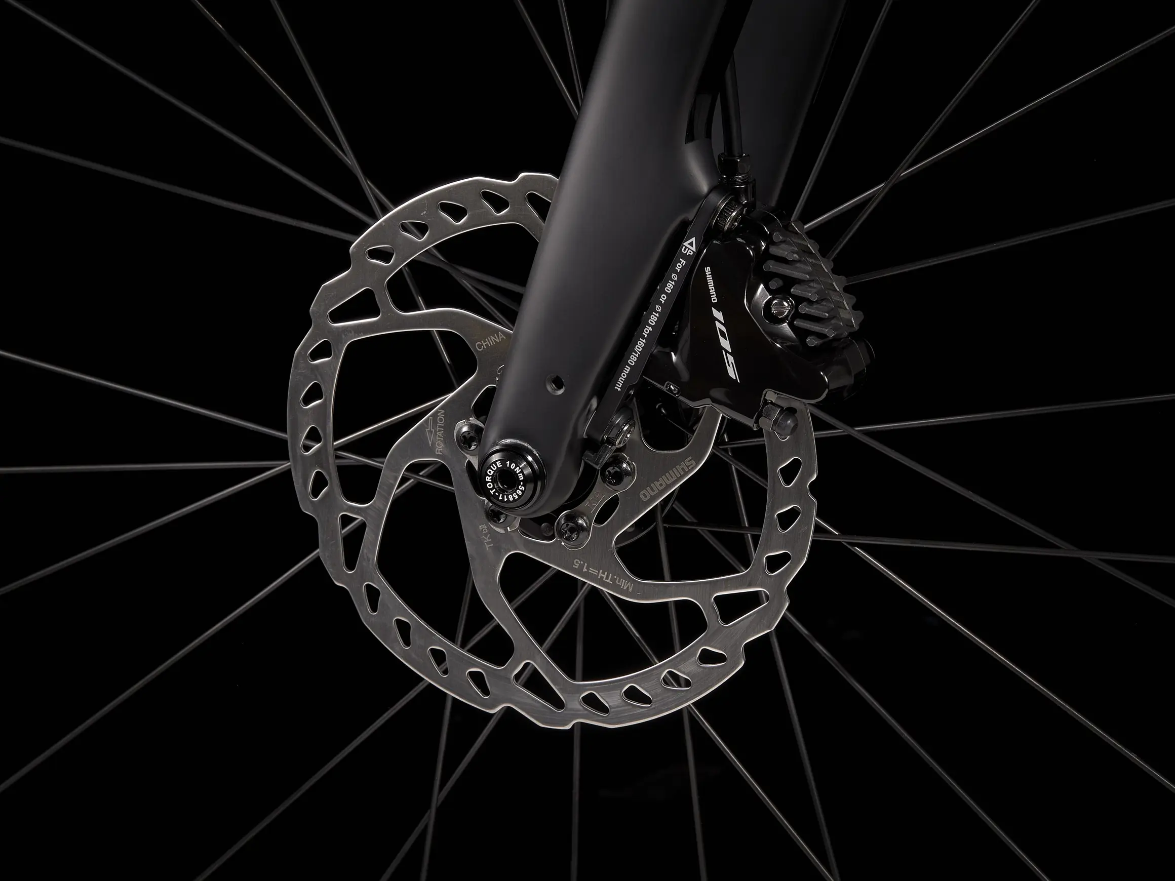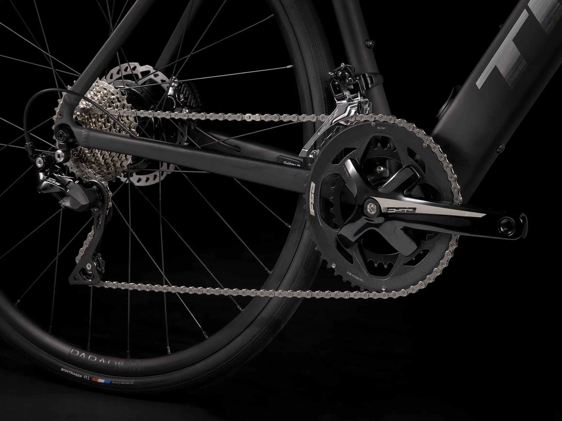 Domane+ carbon, tapered alloy steerer, internal brake routing, fender mounts, flat mount disc, 12x100mm thru axle