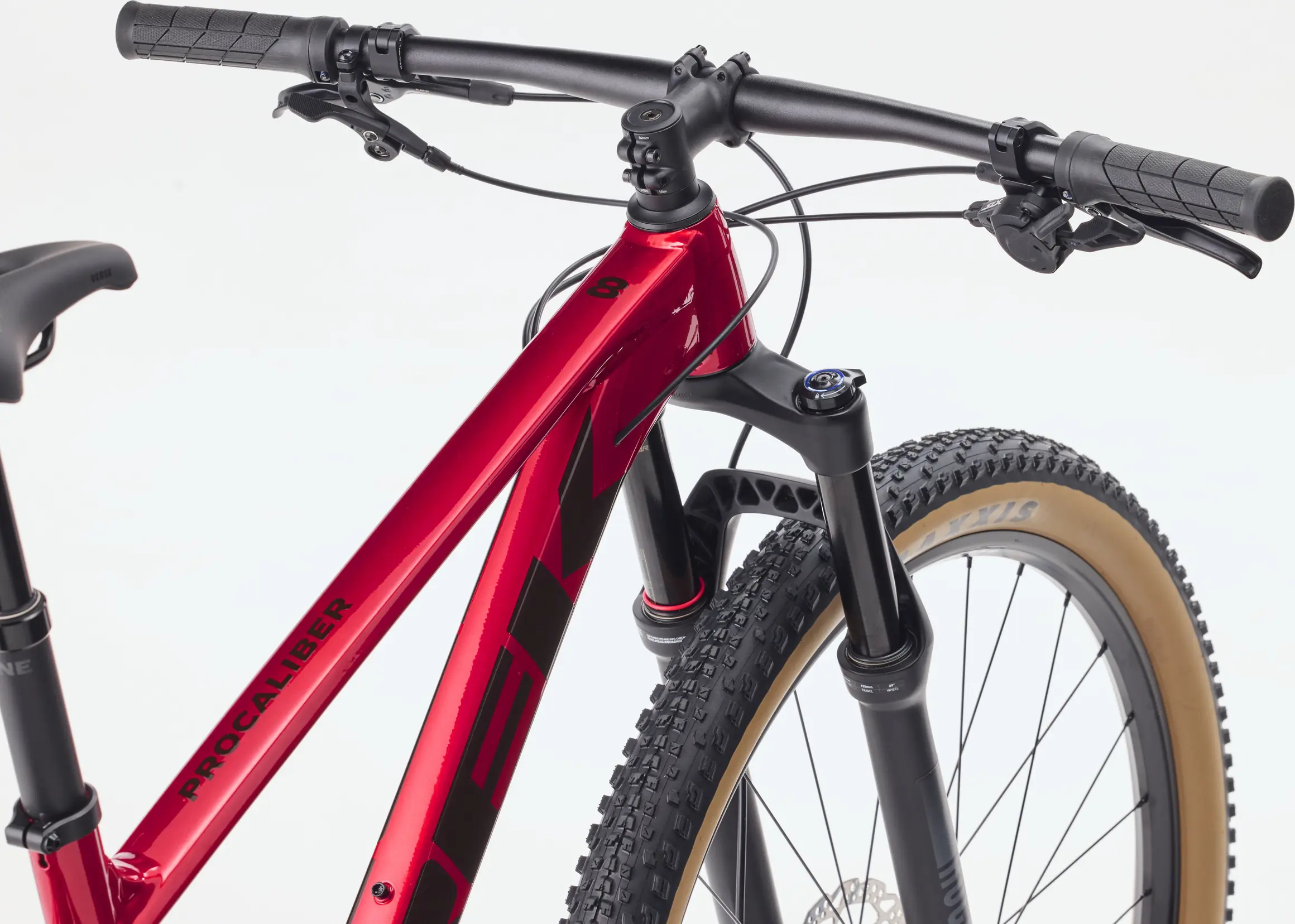 Das Procaliber 8 ist ein reinrassiges Cross-Country-Mountainbike, das für schnelle Runden und für reichlich Spaß auf dem Singletrail gebaut ist. Die moderne, renntaugliche Geometrie bringt dich temporeich durch jede Kurve und lässig über ruppige Trailabschnitte und lässt dich auch herausfordernde Anstiege souverän hochsprinten. Der 12fach-Antrieb mit einem Mix aus Shimano SLX/XT Komponenten hält alle notwendigen Gänge für deine XC-Abenteuer bereit, während die RockShox Recon Gold Gabel mit ihren 120 mm Federweg einen nicht zu vernachlässigenden Komfortvorteil bietet.