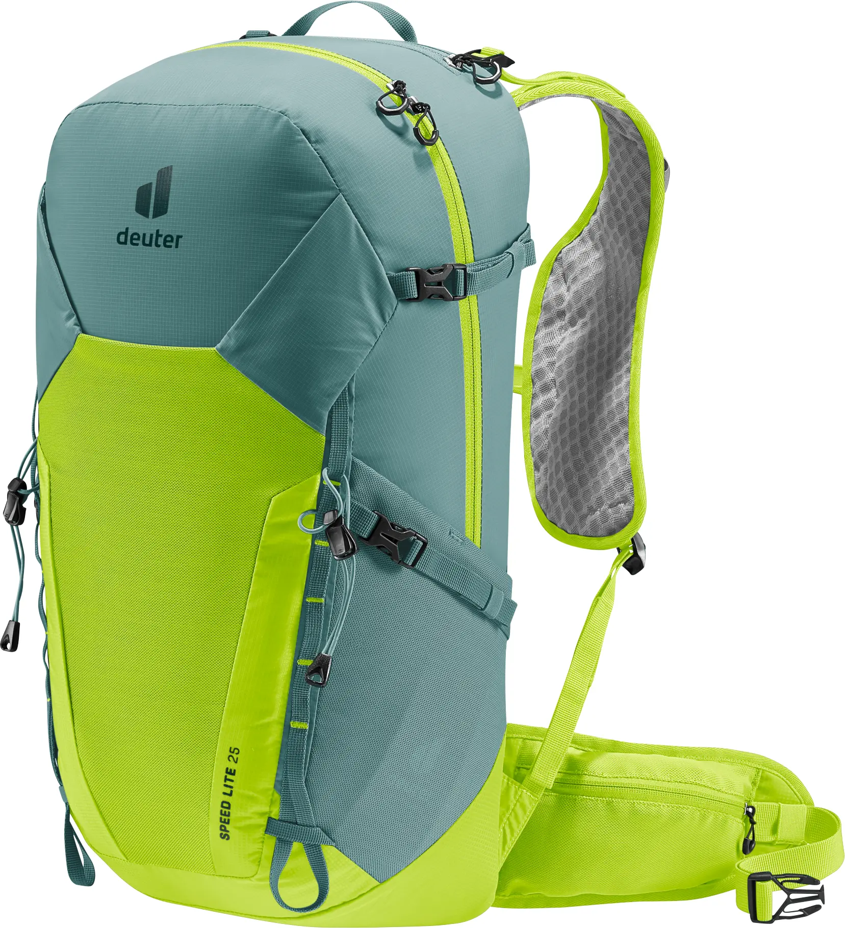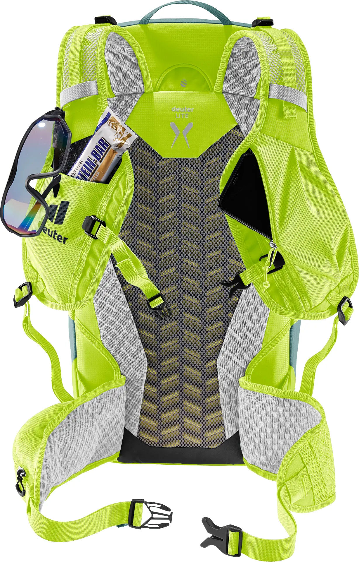 Leicht, schnell und nachhaltig am Berg dank bewährtem Lite Tragesystem, westenförmigen, perforierten Schulterträgern, anschmiegsamen Hüftflossen, stufenlos verstellbarem Brustgurt und 100% recyceltem und bluesign® zertifiziertem Hauptmaterial. Zudem sorgen seitliche Kompressionsriemen für die Minimierung von Auf- und Abbewegung der Ladung beim Laufen und damit für eine uneingeschränkte Bewegungsfreiheit. Und die am Schulterträger integrierte Tasche bietet genügend Platz für alles, was auf schnellen Hikes griffbereit sein soll.