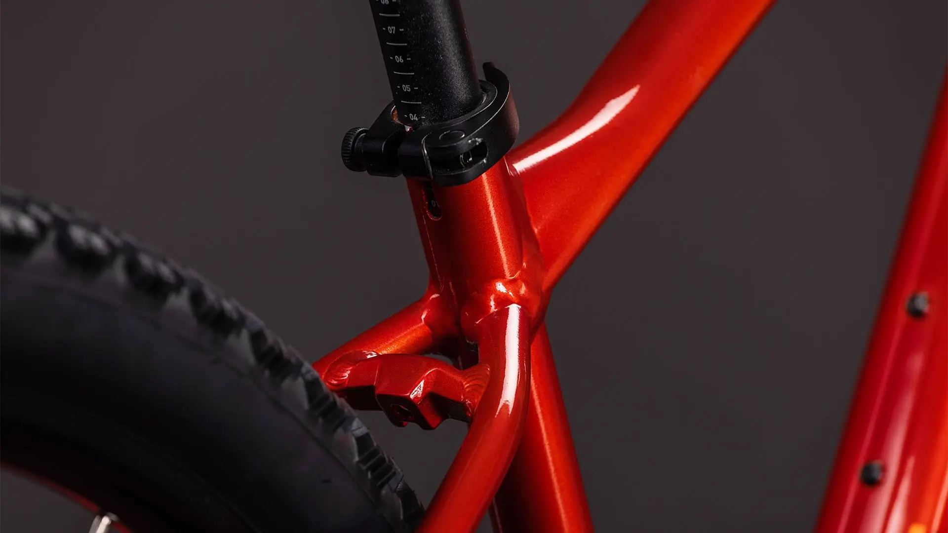 Der Aim Rahmen besticht mit seinem supercleanen Look – verantwortlich dafür: die im Smooth Welding Verfahren hergestellten Verbindungen an Steuerrohr und Sattelrohr und die ins Innere verlegten Züg...