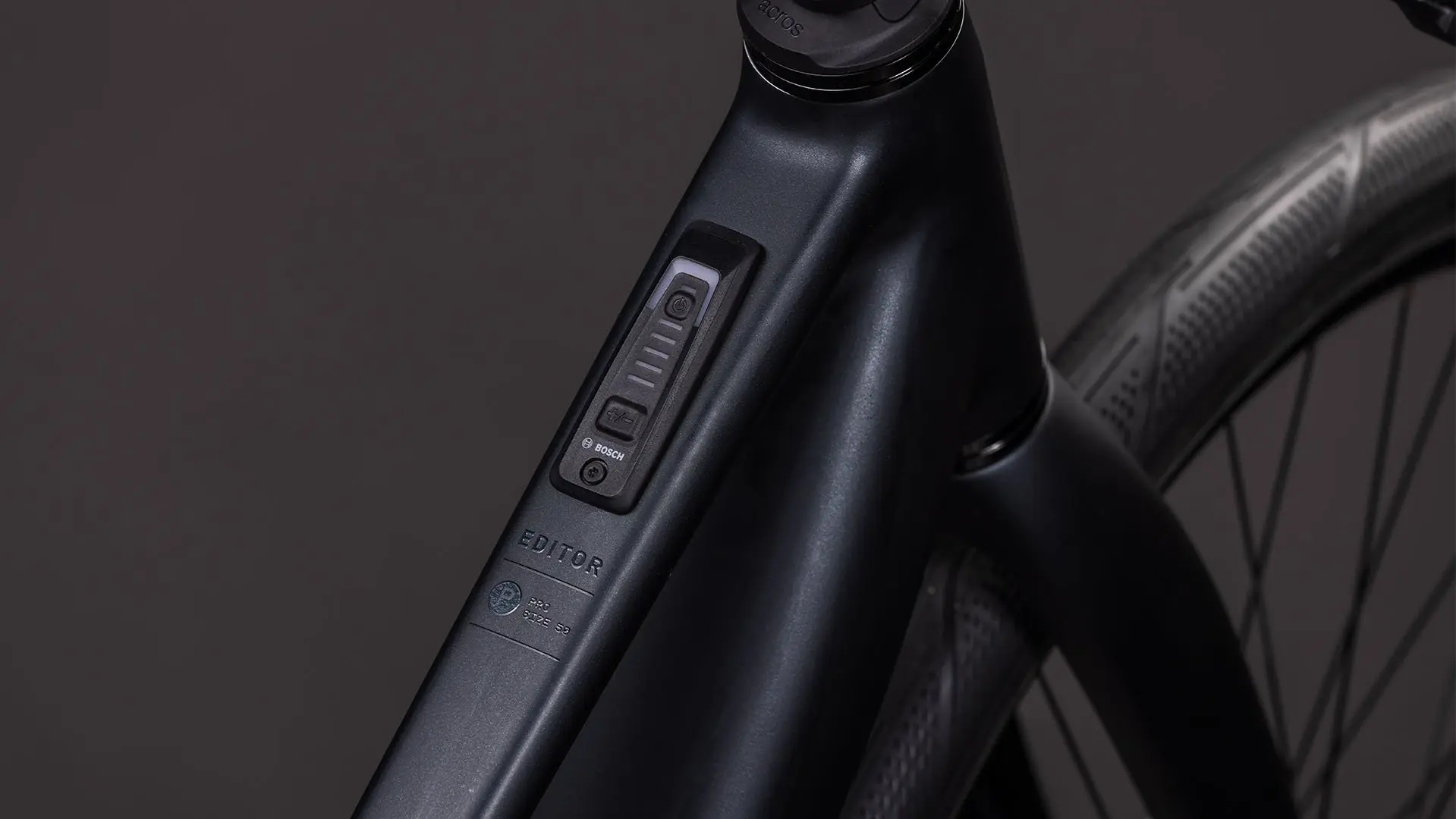 Der Trapezrahmen des Editor Hybrid gibt sich auf den ersten Blick vielleicht eher unauffällig, kommt aber mit zahlreichen cleveren Features auf die Straßen der Stadt. Er besteht aus leichtem, widerstandsfähigem Aluminium und wurde für einen cleanen, authentischen Look an den Hauptrohrverbindungen per Smooth Welding veredelt. Die Leitungen verlaufen komplett im Rahmeninneren, was die aufgeräumte Optik des Chassis' unterstreicht. On top haben wir den 400 Wh Akku formschön ins Unterrohr und den kleinen System Controller unauffällig ins Oberrohr integriert. Die leichte und dennoch stabile Vollcarbongabel setzt dem Komfort und dem Style die Krone auf. Damit ist ein unvergesslicher Auftritt in der City garantiert! Sportliche LeichtigkeitWenn Muskelkraft und elektrische Unterstützung füreinander arbeiten und du genau dann Spitzenleistungen bekommst, wenn du sie brauchst: Mit der Performance Line SX hat Bosch eine sportliche Drive Unit auf den Markt gebracht, die leichter und kompakter ist als alle, die sie bisher entwickelt haben. Für Light eMTBs, eGravel- und eUrban Bikes. Minimalistische, robuste SteuereinheitDer System Controller ist die auf das Wesentliche reduzierte Steuereinheit für eBikes mit dem smarten System. Die bewusst limitierte Anzahl an Funktionen und Informationen erleichtert den schnellen Überblick und lenkt während der Fahrt nicht ab. Der System Controller ist nahtlos ins Oberrohr integriert – dadurch ist der ohnehin schon robuste Begleiter zusätzlich geschützt, fällt kaum auf und eignet sich perfekt für sportliche Touren und designorientierte eBike-Fans.Als zusätzliches Bedienpanel ergänzt die Mini Remote den System Controller, erweitert den Funktionsumfang und ermöglicht die sichere Bedienung. Sie ist per Bluetooth mit dem System Controller verbunden und kann flexibel am Lenker montiert werden. Durch die Tasten in Daumennähe bleiben die Hände jederzeit am Lenker. Mehr Tasten bieten mehr Funktionen: Mit der Mini Remote erhältst du praktische Features wie die smarte Schiebehilfe und du kannst dein eBike-Licht an- oder ausschalten. CompactTube 400Schlank, integriert, kompakt und mit 400 Wattstunden bei gerade einmal rund 2 Kilogramm Gewicht ein echter Energie-Champion: Die CompactTube 400 mit innovativer Akkuzellen-Technik bietet die höchste Energiedichte aller Bosch eBike-Akkus. Das macht den extraleichten Akku zur idealen Wahl für sportliche Light eMTBs, minimalistische eGravel Bikes oder designorientierte eUrban Bikes – kurzum: für alle, die die schlanke Optik konventioneller Bikes lieben, aber auf elektrische Unterstützung nicht verzichten möchten. Der BegleiterDer Compact Charger ist das ideale Ladegerät für alle eBiker. Der Compact Charger lässt sich mit Netzspannungen von 110 bis 230 Volt auch in den USA, Kanada und Australien nutzen.