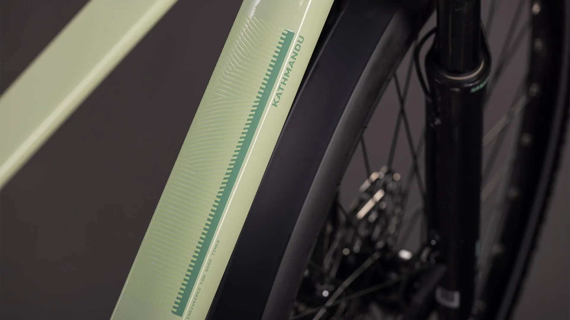 Wir hier bei CUBE sind unter anderem für unsere extreme Liebe zum Detail bekannt. Deshalb haben wir das Kathmandu auch mit dem integrierten Gepäckträger IC 3.0 ausgestattet, der nahtlos und formschön in unsere ACID Schutzbleche übergeht. Dazu gibt's am Hinterrad Aufnahmen für eine Flat Mount Scheibenbremse und einen Seitenständer. Seine cleane, aufgeräumte Optik verdankt das Chassis den im Smooth Welding Verfahren gestalteten Rohrverbindungen und im Inneren verlaufenden Zügen. So viel zum Aussehen. In Sachen Funktion haben wir den Hinterbau mit einer Steckachse versehen und ein konisches Steuerrohr für optimierte Stabilität und Lenkpräzision (selbst bei voller Beladung) verbaut. Also alles da, was es auf Tour braucht – den Rest machst du!