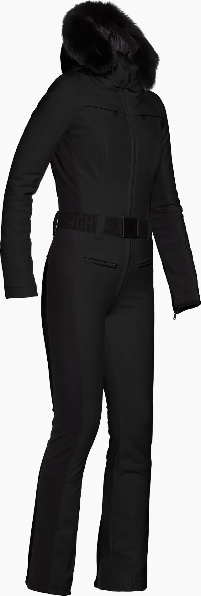Softshell-Skianzug mit Kapuze, extra langer Beinlänge und Kunstfellborte