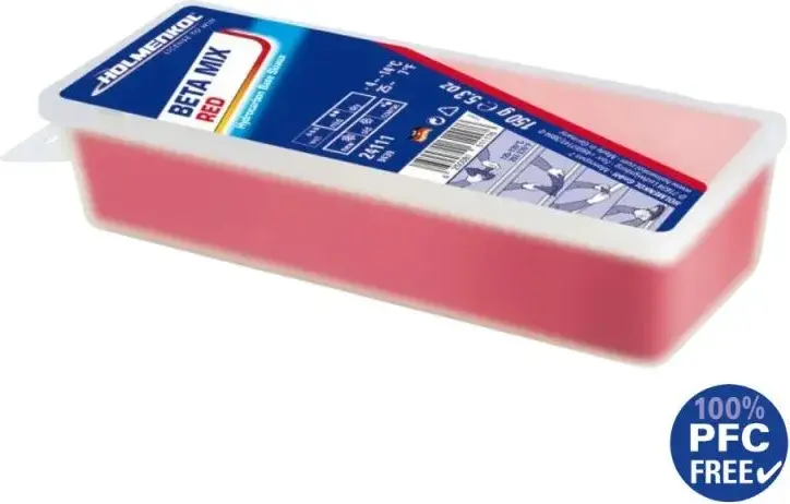 HOLMENKOL Beta Mix Red ist ein hochwertiges Basis-, Grund- und Trainingswachs für alle Schneearten. Für Schneetemperaturen von -4° bis -14° C. Besticht durch seine extreme Abriebfestigkeit und den breiten Einsatzbereich. Hervorragend geeignet als Transportwachs.