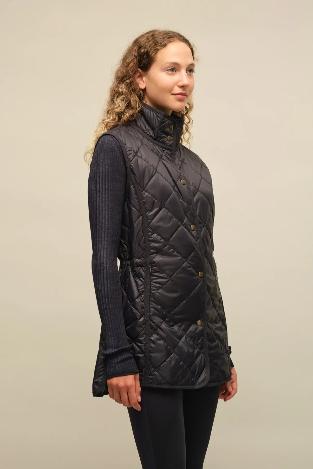 Neben ihrer Funktionalität wie etwa der wärmenden, wasser- und schmutzabweisenden Wirkung, überzeugt die ärmellose Weste mit ihrer Optik. Feinstes italienisches Nylon wurde mit klassischem Rautenmuster gesteppt. Außerdem lässt sie sich ganz klein zusammenfalten, um easy in Taschen oder Rucksäcken verstaut zu werden. Dank ihrer praktischen Länge ein perfekter Reisebegleiter.