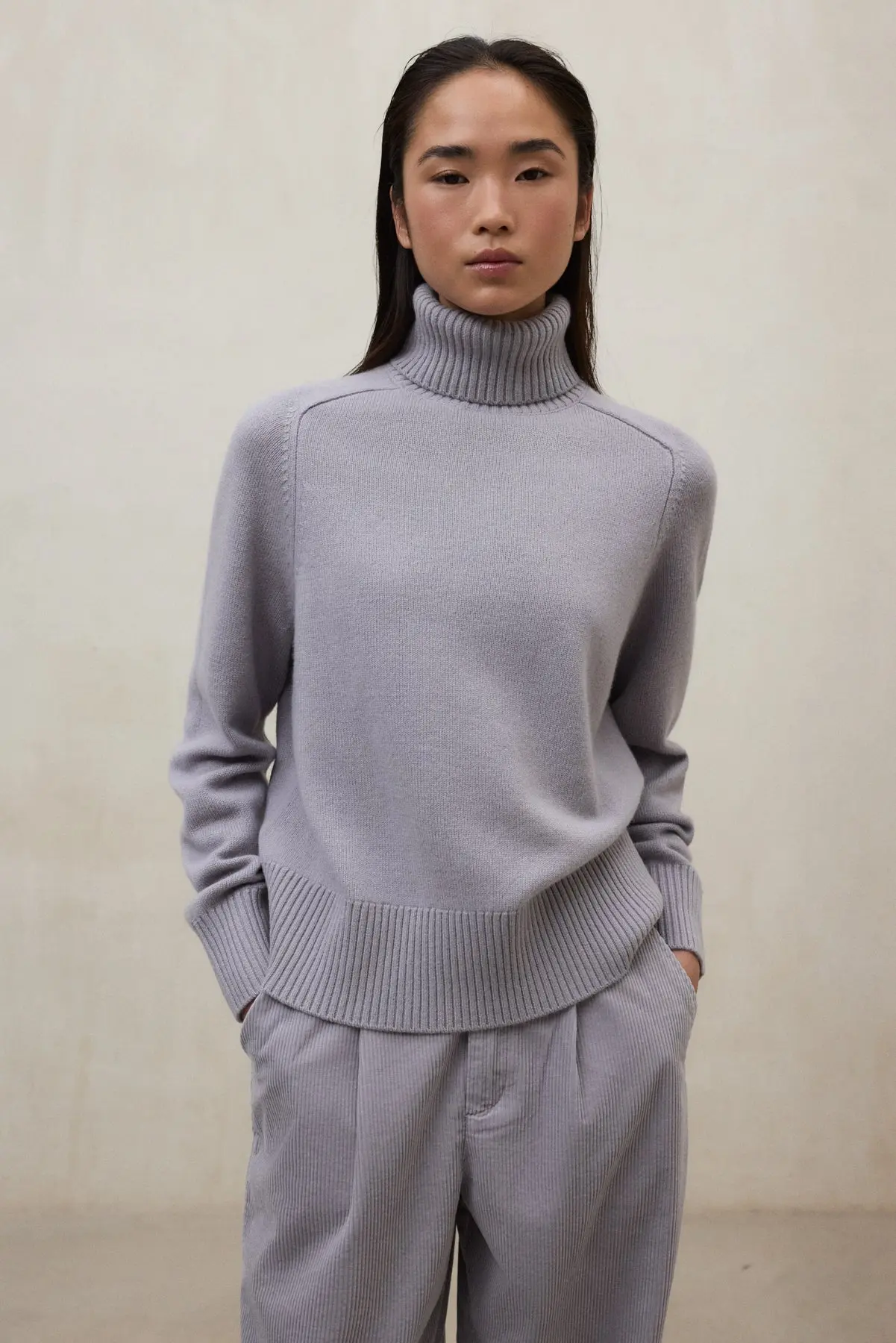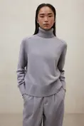 The Caqui sweater is made of 100% recycled wool. Using recycled wool instead of virgin wool helps cut down on waste, save resources such as water and soil, and reduce emissions and potential water pollution, aligning with the principles of a circular economy. Made of wool, this stylish stand-up collar sweater is perfect for keeping warm.