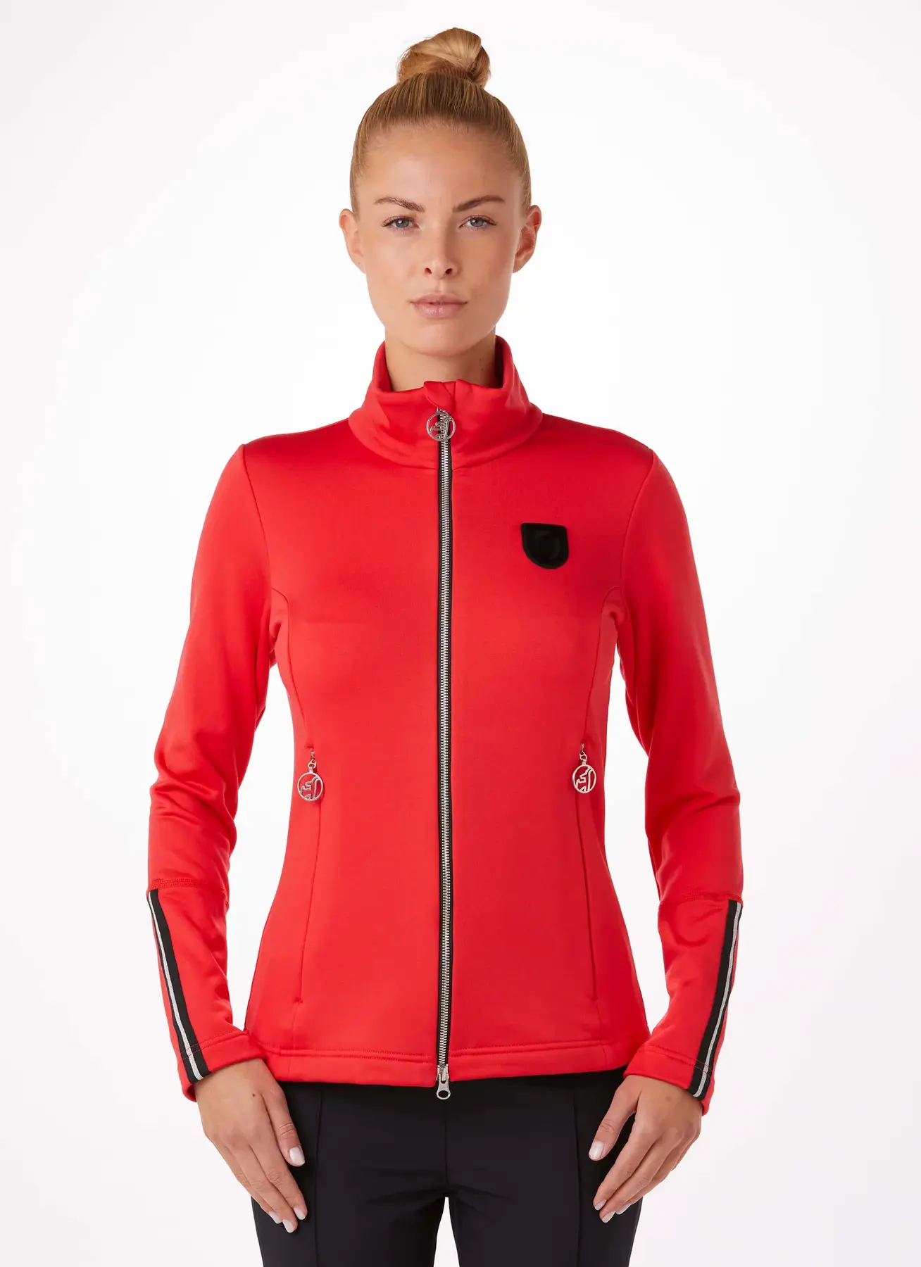 Der Damen Mid Layer KATHI wurde aus einem exzellenten italienischen Power Stretch gefertigt. Das elastische und schnelltrocknende Gewebe hält dauerhaft die Wärme und leitet gleichzeitig Feuchtigkeit nach außen. Während die Vorderseite mit dem praktischen wie stilvollen YKK 2-way METALUXE® Mirror ausgestattet ist, lassen sich die Seitentaschen mit nahtfeinen Reißverschlüssen sicher verschließen. Akzentstreifen mit silberfarbenem Garn am Ärmelabschluss verleihen dem Light Jacket eine luxuriöse Note.