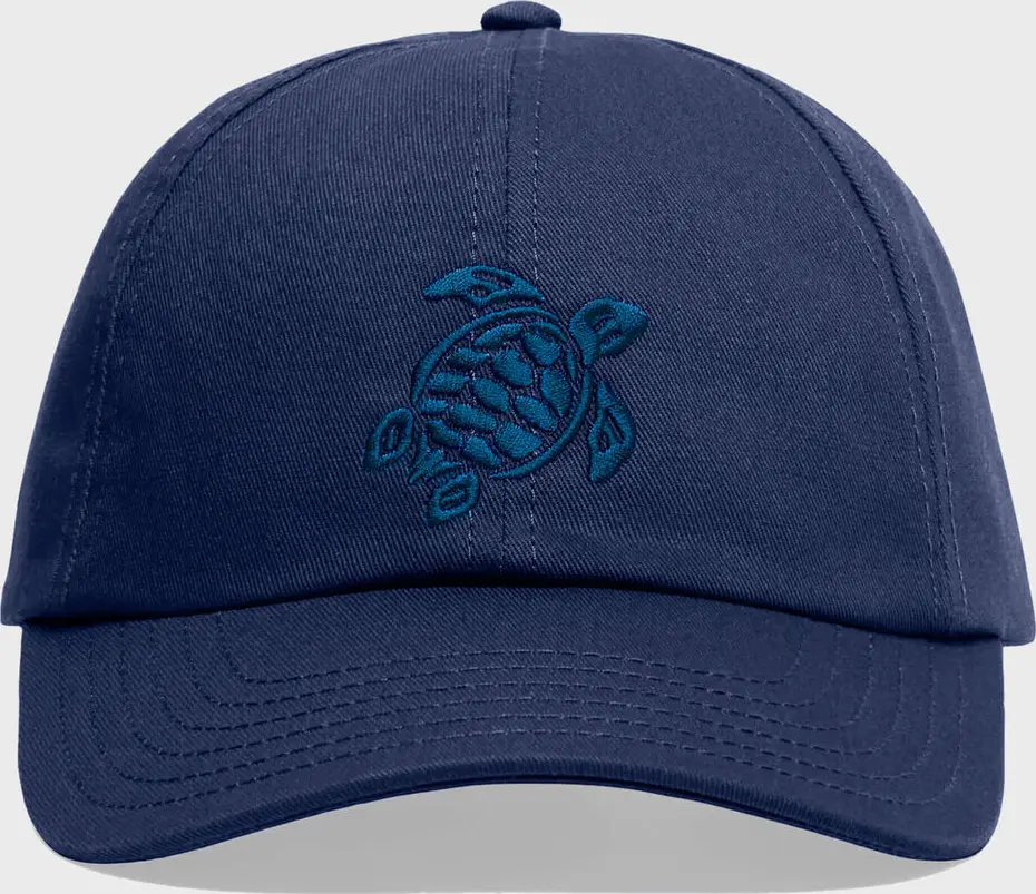 Classic cotton cap with a solid design. Features an embroidered turtle on the front and an adjustable fastening band for a perfect fit.