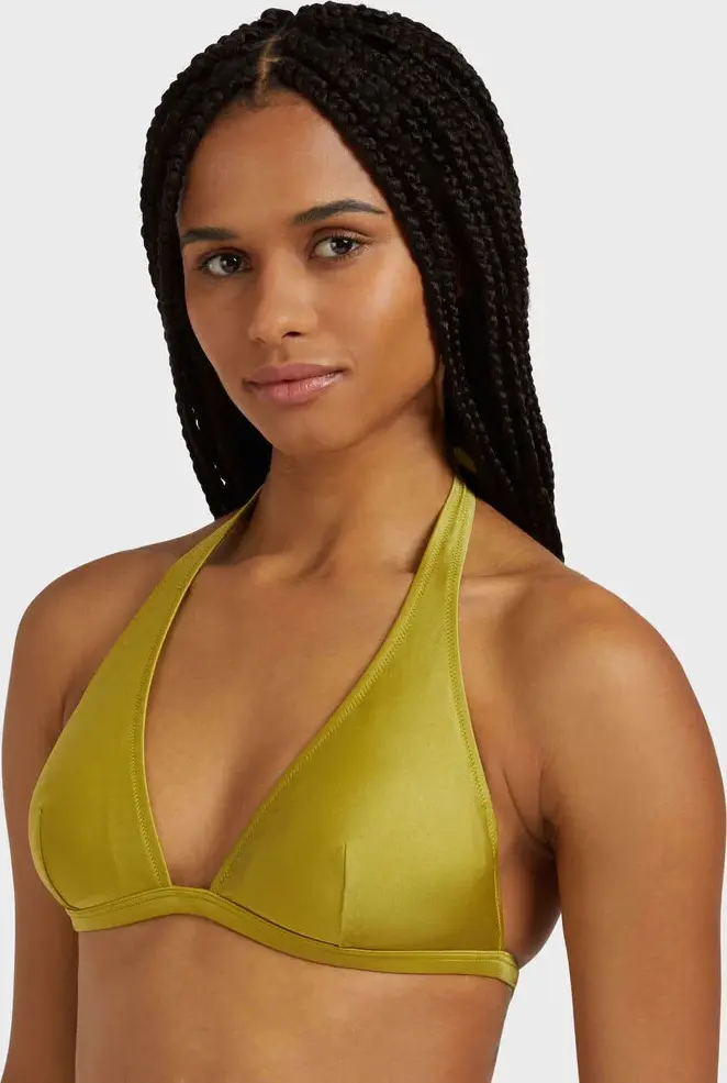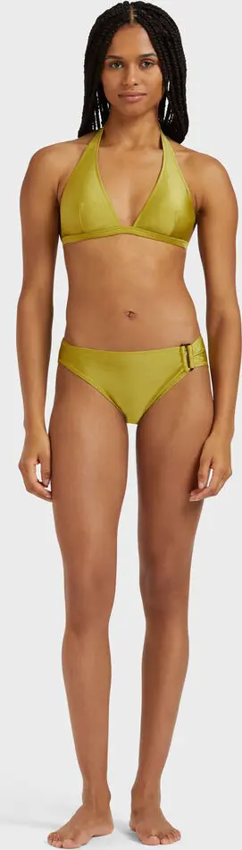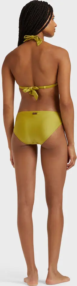 Dieses Bikinioberteil aus dehnbarem Jersey mit dezentem Glanz fängt bei jeder Bewegung die Sonnenstrahlen ein. Eine Hommage an den Glamour der Riviera, neu interpretiert mit moderner Leichtigkeit.
