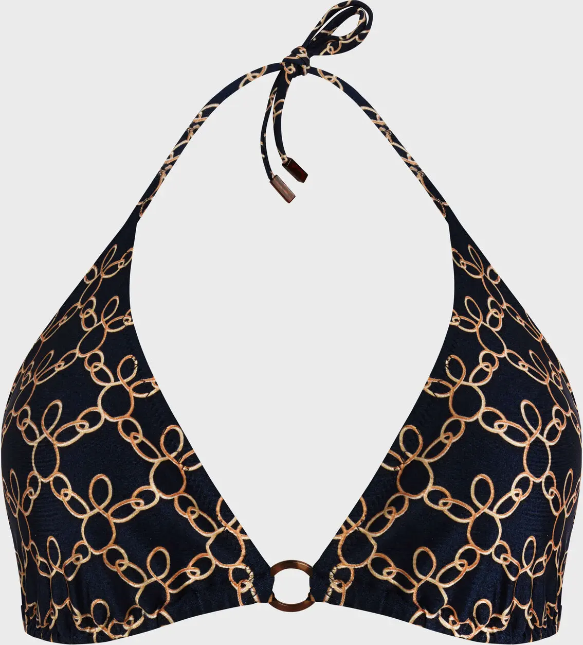 Ein verführerisches Bikinioberteil mit minimaler Bedeckung und Schildpatt-Detail auf der Brust. Entworfen in der Familienkollektion, mit Turtles Chain-Print und aus Stretch-Jersey gefertigt.