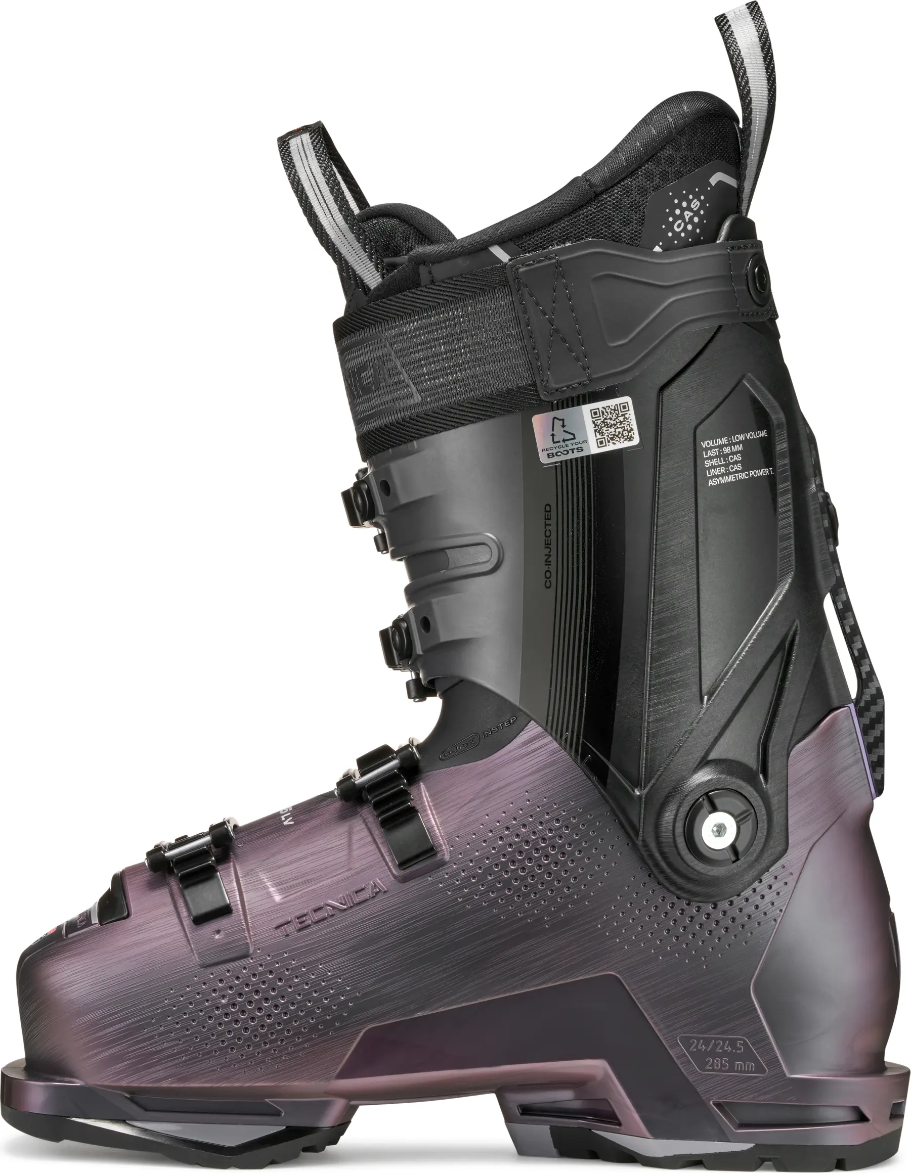 Every foot is a different size and width. Therefore, our ski boots are available in three different volumes to meet all needs. Tecnica ski boots are divided as follows: LV (low – from 93 to 98mm), MV (mid – from 99 to 100mm), and HV (high – 103mm).
