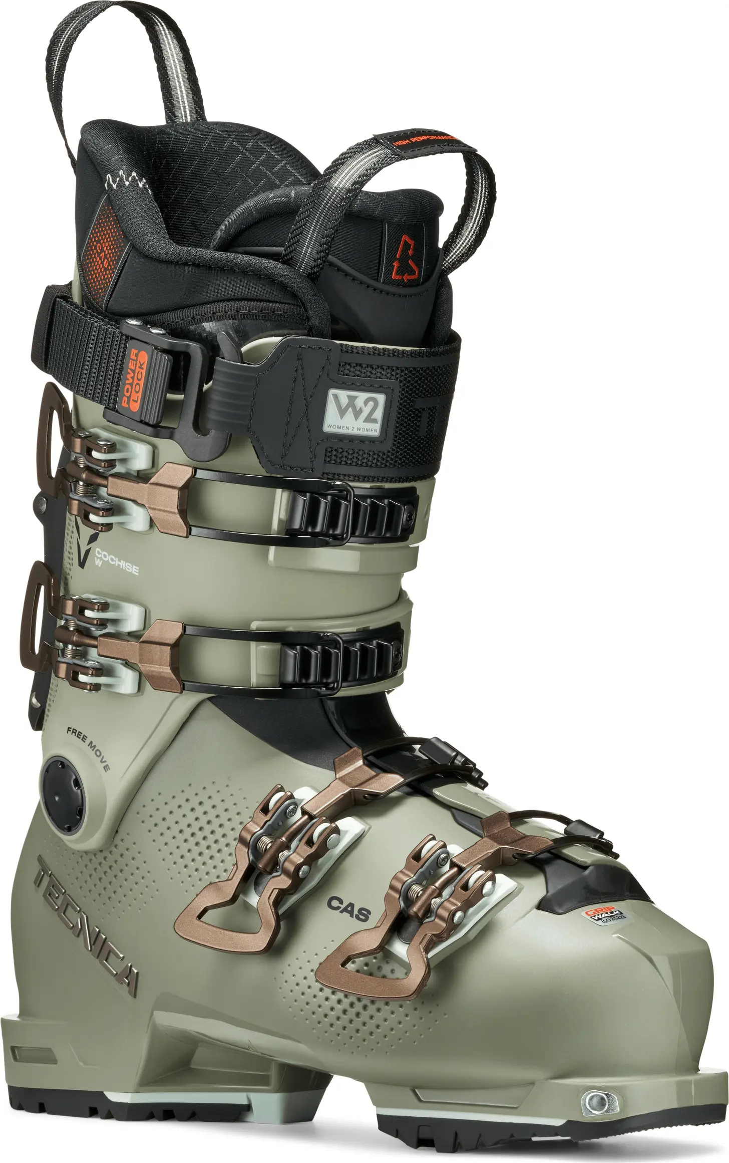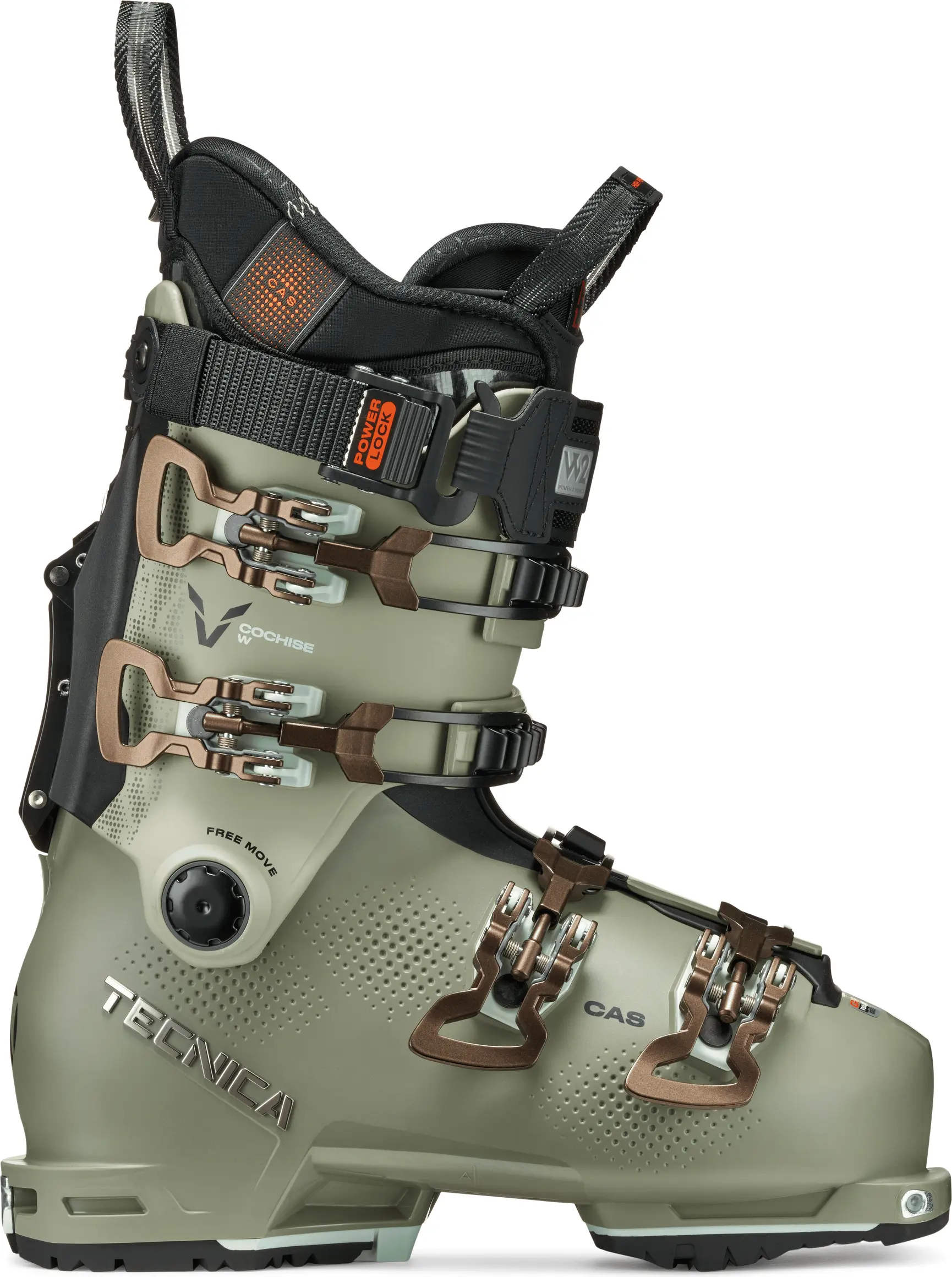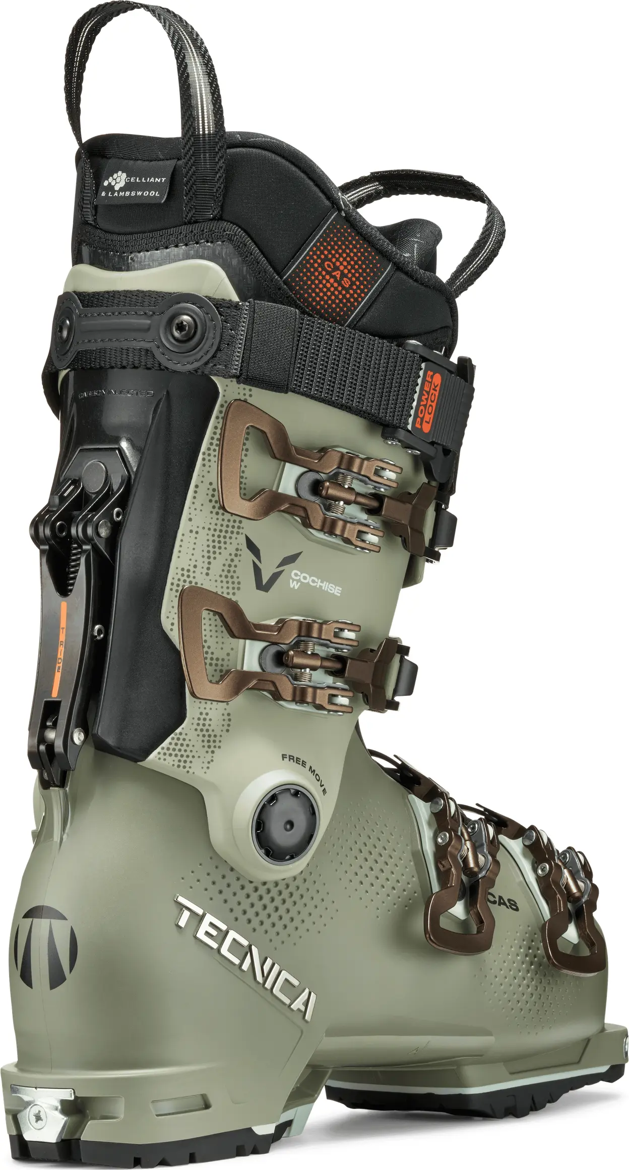 Mit dem Cochise 115 W DYN GW kommen sportliche Freeriderinnen voll auf ihre Kosten. Der High Performance Schuh verfügt über einen 115er Flex, vier Schnallen in Tourenposition und eine GripWalk Sohle mit Vibram-Technologie. Somit eignet sich der Cochise 115 W DYN GW bestens für alle Damen, die sich auf der Piste und auch im Freeride-Terrain bewegen. Mit dem T-Ride System sind Schale und Schaft des Skischuhs verbunden und der Hebel ermöglicht ein angenehmeres Gehgefühl beim Aufstieg. Oben angekommen lässt sich das System in Sekundenschnelle in Abfahrtposition umstellen. Der Schuh mit 99 mm breitem Leisten passt Frauen mit normal breiten Füßen am besten. Ein Fachhändler kann die anatomisch vorgeformte Schale außerdem mit der C.A.S. Technologie individuell an jeden Fuß anpassen. Nach dem Eco Design entwickelt, besteht der Schuh aus PVC-freien, recycelten und weniger komplexen Material. Somit ist der Schuh nach seinem Lebenszyklus einfacher zu recyceln.