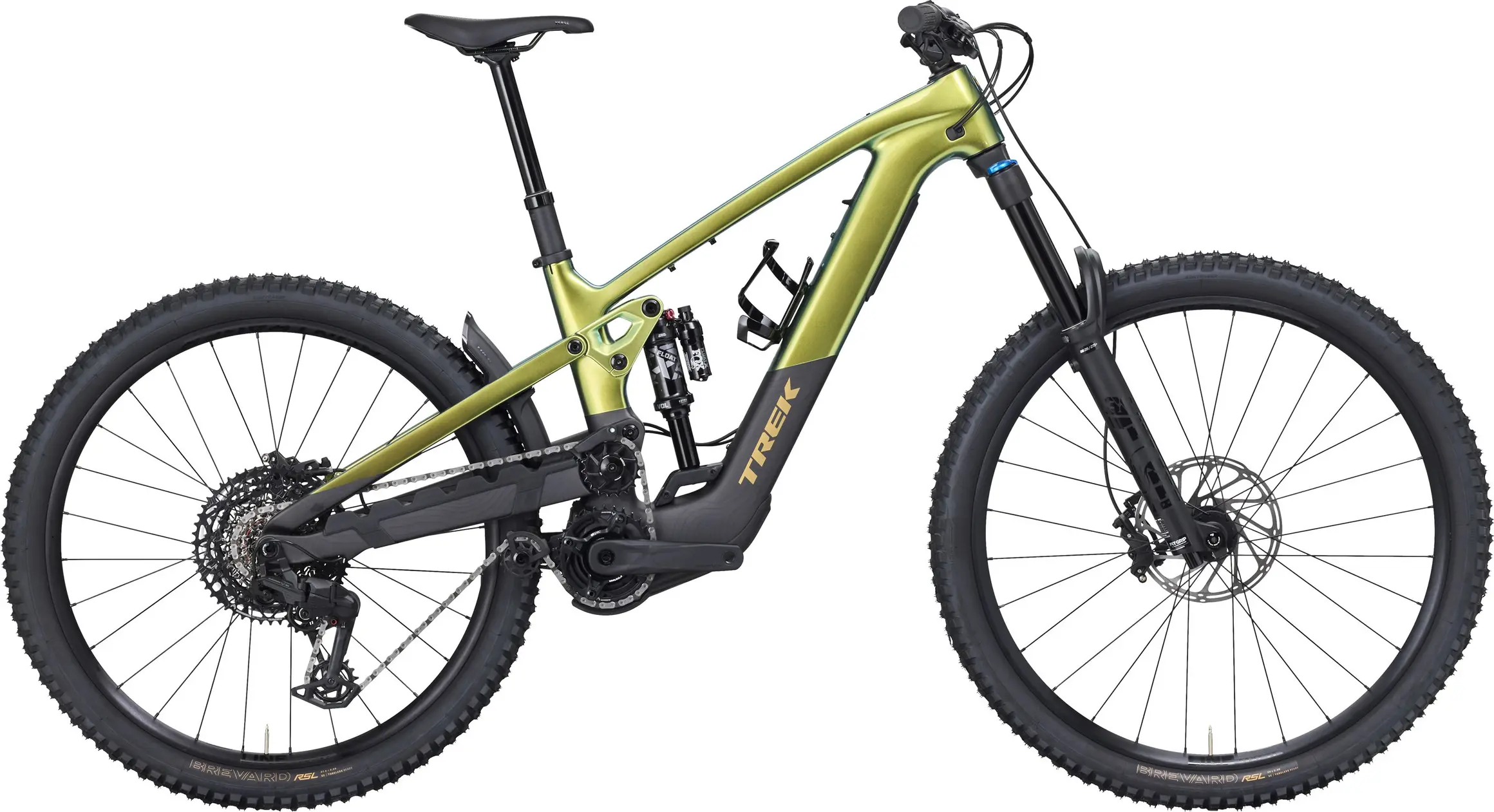 Rahmen OCLV Mountain Carbon, herausnehmbarer Akku, hoher Hauptdrehpunkt, Umlenkrolle, Steuersatz mit verstellbarem Lenkwinkel, verstellbare Progression, integrierter Rahmenschutz, interne Zugführung, Alu-Umlenkhebel, Aufnahme für obere Kettenführung, 55 mm Kettenlinie, ABP, UDH, 148 x 12 mm Steckachse, 170 mm Federweg