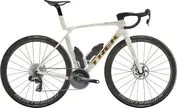 Madone Gen 8, Carbon einteilig, konischer Carbongabelschaft, interne Bremszugführung, Flat Mount Scheibenbremsaufnahme, abgeschrägte 12 x 100 mm Steckachse