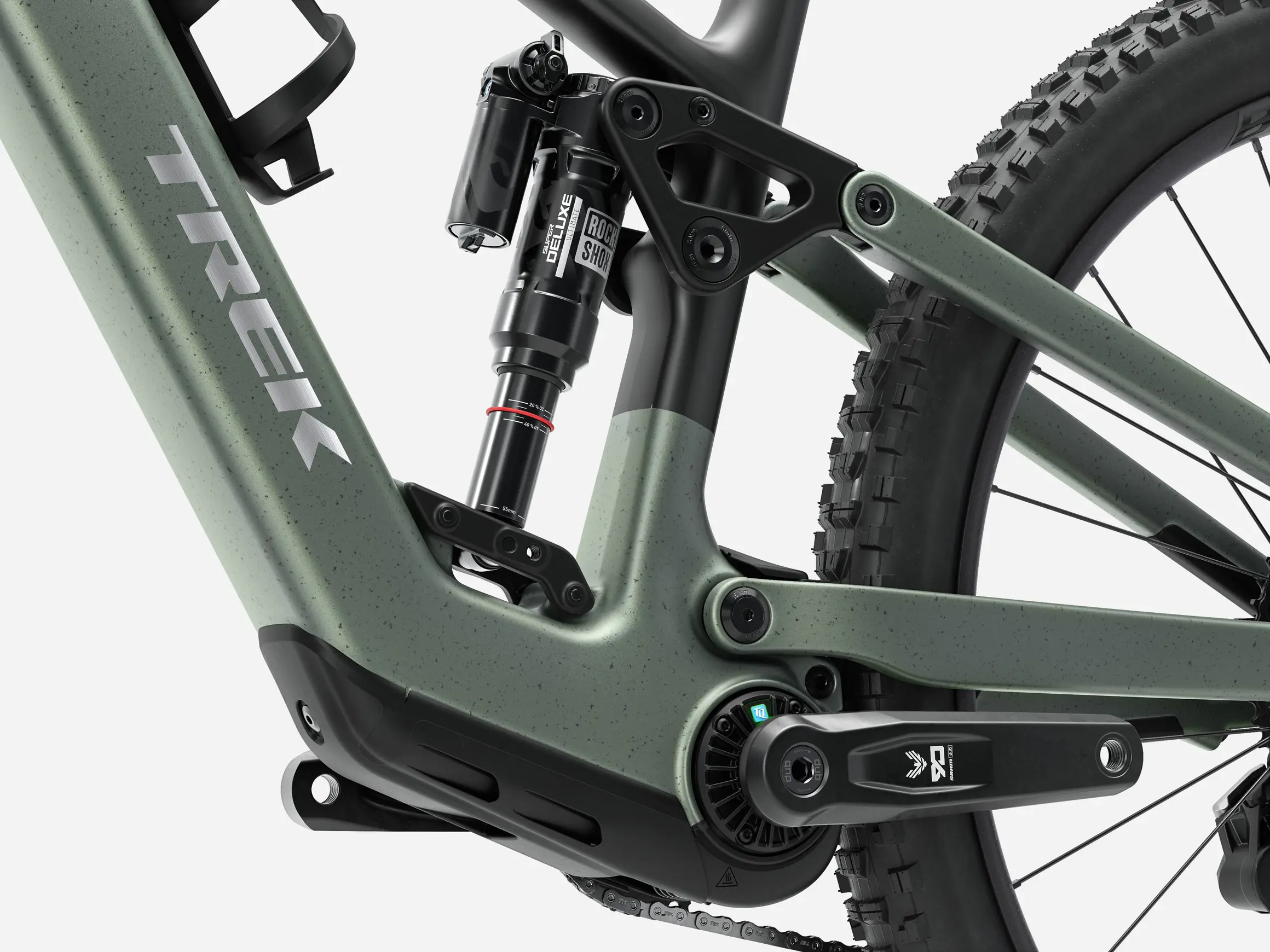 Rahmen OCLV Mountain Carbon, herausnehmbarer Akku, verstellbarer Steuersatzwinkel, verstellbares Hebelverhältnis, geführte interne Zug- und Leitungsverlegung, austauschbare Aluminiumumlenkhebel, austauschbare untere Dämpferaufnahme, Unterrohrschutz, Shuttle-Protektor, ABP, UDH, Boost148, anpassbarer Federweg 145 – 160 mm