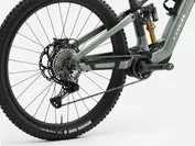 OCLV Mountain Carbon, herausnehmbarer Akku, verstellbarer Steuersatzwinkel, verstellbares Hebelverhältnis, geführte interne Zug- und Leitungsverlegung, austauschbare Aluminiumumlenkhebel, austauschbare untere Dämpferaufnahme, Unterrohrschutz, Shuttle-Protektor, ABP, UDH, Boost148, anpassbarer Federweg 145 – 160 mm