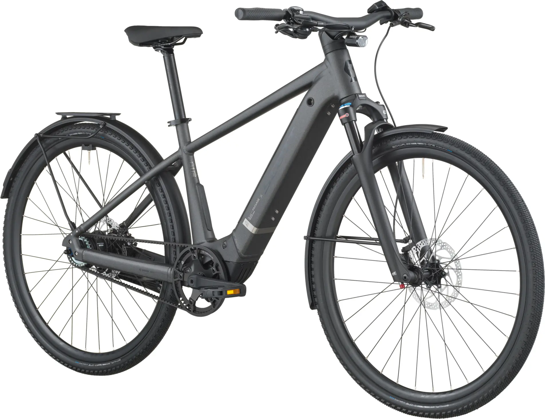 Das Passage 10 Belt E-Bike ist dein Ticket für City-Trips per E-Bike und problemlose Wartung zu Hause. Wir haben Passage mit schmalem Design und schlankem Rahmen entwickelt, die den leichten Bosch SX-Motor perfekt ergänzen. Zusammen bieten sie als Dynamit-Duo jede Menge Power, um die Hügel der Stadt zu erklimmen oder den Verkehr mit Leichtigkeit zu meistern.Beim Fahren fühlt sich das Passage dank der ausgewogenen Geometrie und gleichmäßigen Gewichtsverteilung leicht an, denn der Motor und 400-Wh-Akku sitzen niedrid am Rahmen. Der Bosch SX-Motor schont die Beine und dank des schmaleren Q-Faktor im Vergleich zu größeren E-Bikes kannst du natürlich in die Pedale treten. Beim Fahren mit dem Passage durch die Stadt auf unebenen Asphalt kannst du dich darauf verlassen, dass die 75-mm-Federgabel genug Dämpfung bietet, um die Kontrolle zu behalten. Wenn du lange unterwegs bist, ist der Gepäckträger genau das Richtige, um alles Wichtige zu verstauen.Das Passage 10 verwendet einen Riemenantrieb, der viel sauberer als ein herkömmlicher Kettenantrieb ist, kein Schmiermittel verwendet, sich nicht an der Kleidung festsetzt und wenig bis gar keine Wartung erfordert. Wenn du das Passage am Ende des Tages parken willst, klappe einfach den Fahrradständer aus und bedanke dich für die mühelose Fahrt.Bitte beachte, dass sich die Bike-Spezifikationen ohne vorherige Ankündigung ändern können.