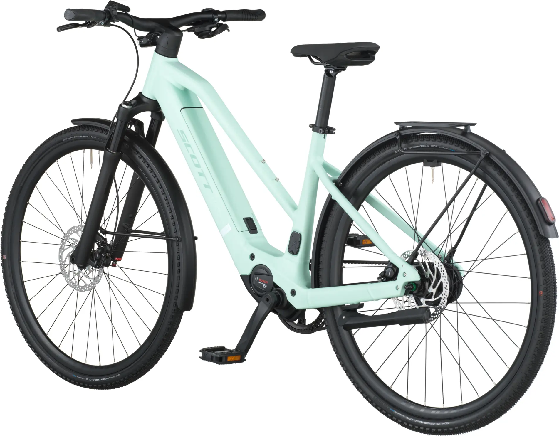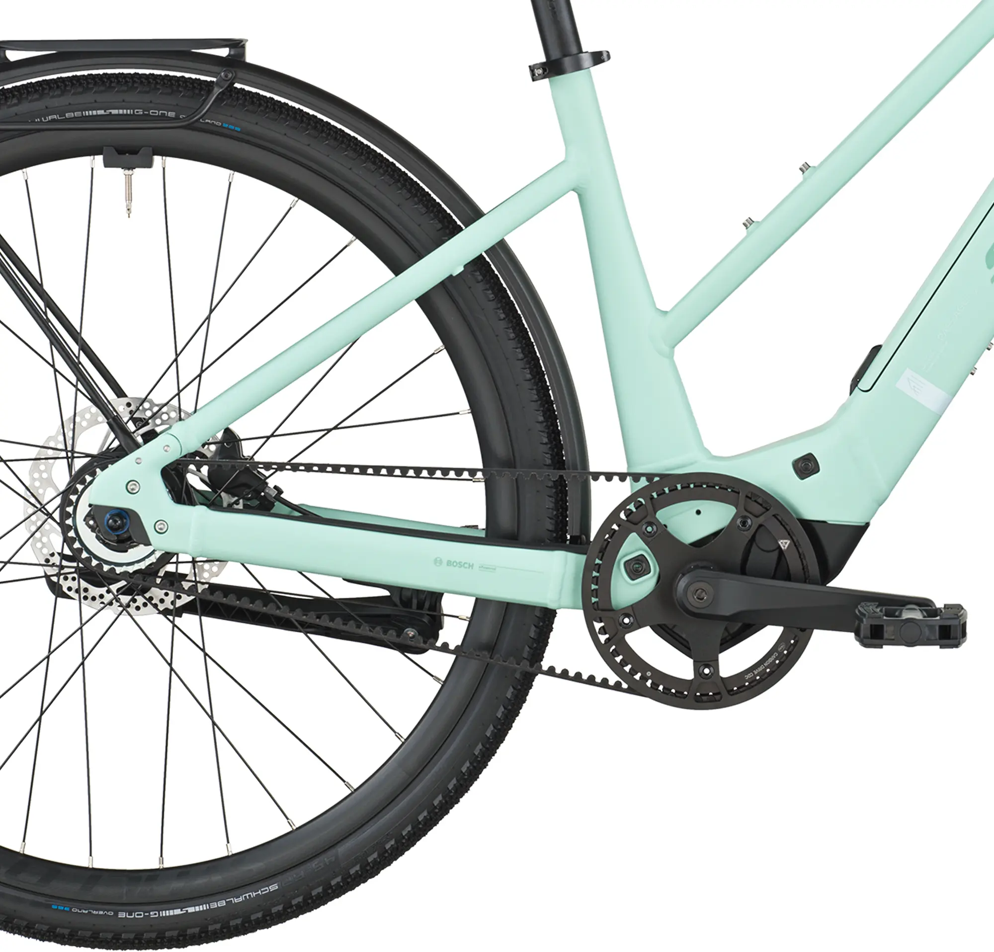Das Passage 10 Belt Slope E-Bike kombiniert die Power und die ausgewogene Fahrqualität unseres Passage 10 Belt Bikes für mühelose und unterhaltsame Fahrten durch die Stadt und verfügt dazu über eine niedrigere Schrittfreiheit, um leichter aufzusteigen.Das Passage 10 Belt Slope kommt durch den 2 kg SX-Motor von Bosch und den schlanken 400-Wh-Akku ohne die voluminöse Ästhetik der meisten E-Urban-Bikes aus. Die leistungsstarke Kombination macht das Bike leicht und ausbalanciert für Power beim schnellen bergauf Fahren, wenn du sie brauchst, und bietet genügend Reichweite, um einen langen Pendelweg zu bewältigen.Der Bosch SX-Motor schont die Beine und dank des schmaleren Q-Faktor im Vergleich zu größeren E-Bikes kannst du natürlich in die Pedale treten. Die 75-mm-Federgabel auf der Vorderseite federt deine Fahrt auf unebenen Straßen ab, wenn du durch die Stadt fährst. Wenn du die in der Freizeit unterwegs bist oder extra Gepäck unterwegs mitnimmst, ist der Gepäckträger genau das Richtige für dich.Das Passage 10 verwendet einen Riemenantrieb, der viel sauberer als ein herkömmlicher Kettenantrieb ist, kein Schmiermittel verwendet, sich nicht an der Kleidung festsetzt und wenig bis gar keine Wartung erfordert. Wenn du das Passage für den Tag parken willst, einfach den Fahrradständer ausklappen und dich für die mühelose Fahrt bedanken.Bitte beachte, dass sich die Bike-Spezifikationen ohne vorherige Ankündigung ändern können.