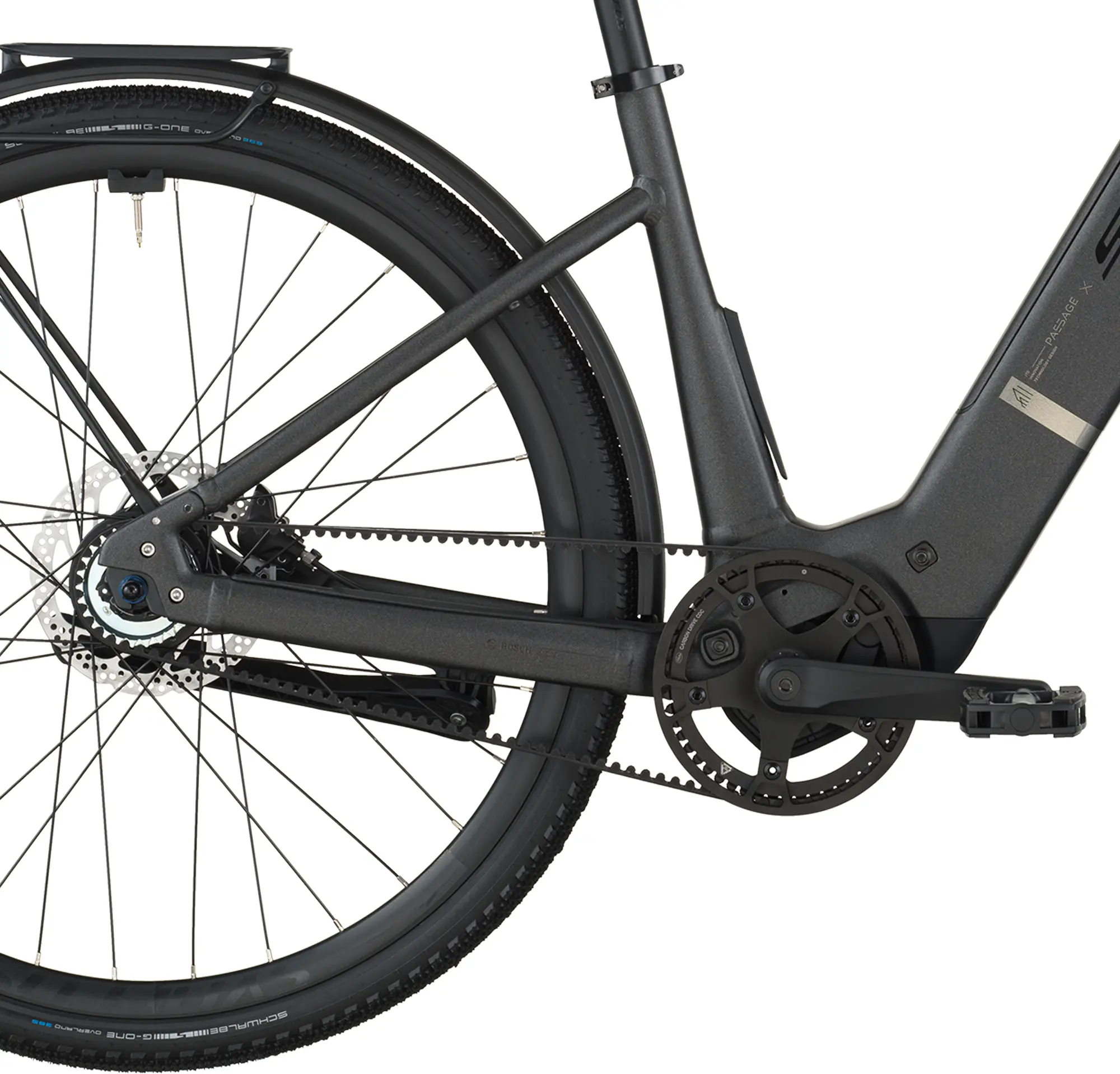 Das Passage 10 Wave Bike ist unser e-URBAN-Bike, das sich dank seiner niedrigen Schrittfreiheit einfach fahren lässt. Damit ist es kinderleicht für alle in der Familie, die Fahrt in die Stadt zu genießen.Auf den ersten Blick erkennt man beim Passage 10 kaum, dass es sich um ein E-Bike handelt – dank seiner schlanken Linien und der unaufdringlichen Erscheinung. Das liegt am SX-Motor von Bosch (der nur 2 kg wiegt) und dem schmalen 400-Wh-Akku. Die leistungsstarke Kombination hält das Bike leicht, flexibel und ausbalanciert für Power, wenn du sie brauchst, und bietet genügend Reichweite, um einen langen Pendelweg leicht zu bewältigen.Abgesehen vom leichteren Auf- und Absteigen fährt sich das Passage 10 auch angenehmer als größere E-Bikes. Der Bosch SX-Motor verfügt über einen schmaleren Q-Faktor für einen natürlichen Pedalstil und Handling, an das du mit leichten Bikes gewöhnt bist. Die 75-mm-Federgabel auf der Vorderseite federt deine Fahrt auf unebenen Straßen ab, wenn du durch die Stadt fährst. Wenn du die in der Freizeit unterwegs bist oder extra Gepäck unterwegs mitnimmst, ist der Gepäckträger genau das Richtige für dich.Wir haben das Passage 10 mit Shimano 8-Gang-Antrieb ausgestattet, um jede Menge Gänge zu bieten und die Straßen in der Stadt zu genießen, sowie 45-mm-Reifen für mehr Stabilität und Komfort, um bei Überraschungen auf der Strecke zu navigieren. Außerdem gibt es einen Fahrradständer, damit du ganz einfach an deinem Ziel parken kannst.Hinweis: Fahrradspezifikationen können ohne vorherige Ankündigung geändert werden.