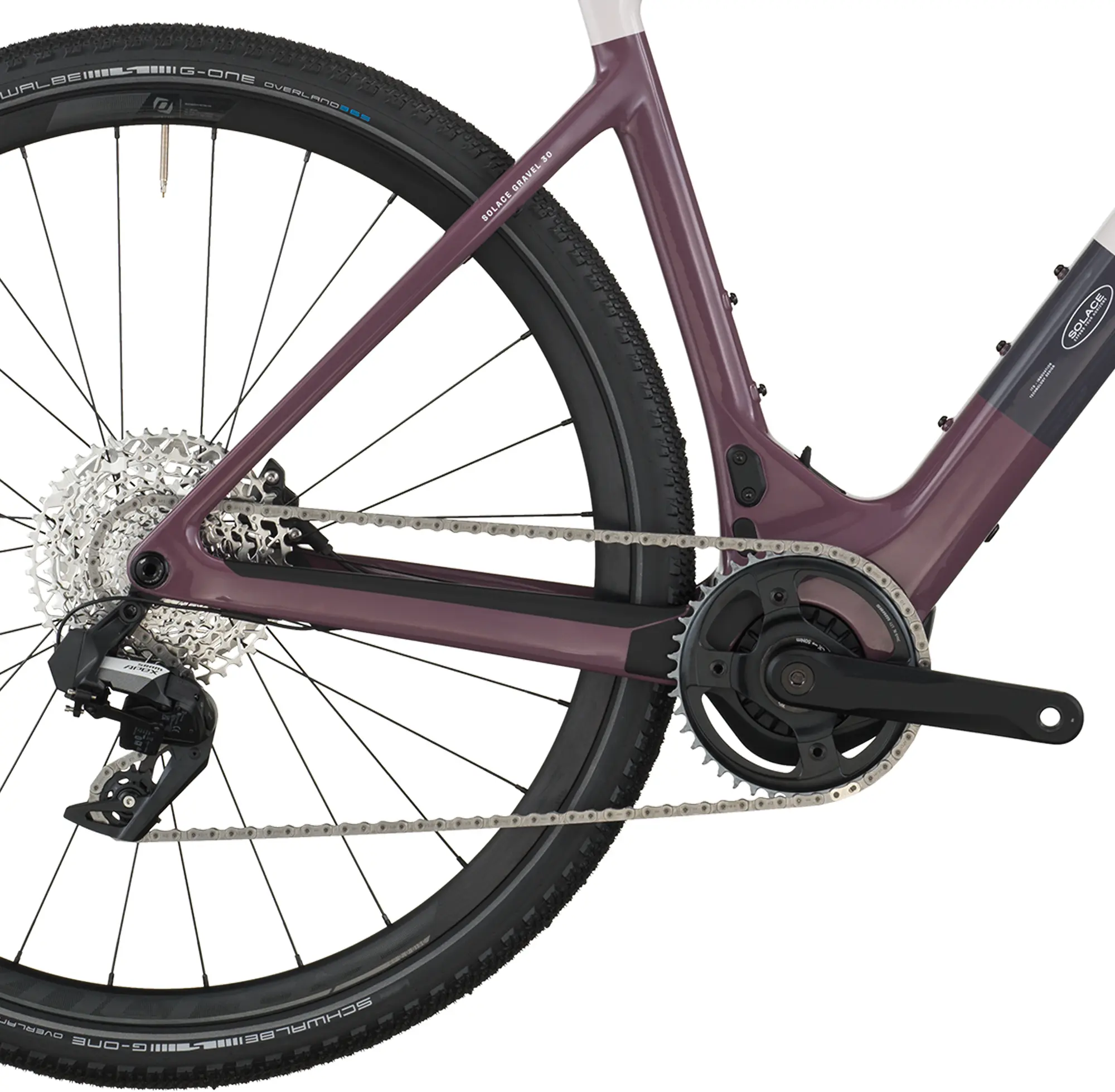 Das Solace Gravel 30 E-Bike macht es dir leichter denn je, deine liebsten Gravel-Ausfahrten zu meistern. Dank der verbesserten Power in einem bereits leichten, agilen und vielseitigen Rahmendesign hast du das Selbstvertrauen und die Ausdauer, um noch weiter auf Erkundungstour zu gehen.Die neue TQ HPR60-Motoreinheit ist auf dem neuesten Stand und bietet ein Drehmoment von 60 Nm für eine 20-prozentige Leistungssteigerung, die deine Beine bei steilen Anstiegen schätzen werden.Die Kontrolle des gesamten Drehmoments erfolgt durch 50-mm-Schwalbe G-One Overland-Reifen. Sie sorgen für die nötige Traktion auf rutschigen Strecken sowie für die nötige Dämpfung, um über unwegsames Gelände zu rollen, wenn du mit dem neuen Solace unterwegs bist.Dieses Solace verfügt über die SRAM Apex XPLR AX 12-Gang-Schaltgruppe, die leistungsorientierte Schaltungen und Premium-Antriebe zu einem guten Preis bietet. Es ist das perfekte Setup, wenn du mit deinem ersten E-Bike auf Schotter fahren willst.Hinweis: Fahrradspezifikationen können ohne vorherige Ankündigung geändert werden.