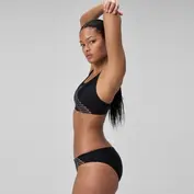 Fitnessziele? Du erreichst sie in unserem sportlichen schwarzen Bikini mit dezenter Boom-Logografik. Das Racerback-Design unterstützt die volle Beweglichkeit der Schulter, sodass du das Tempo weiter vorantreiben kannst. Passe den Kordelzug am Slip für einen sicheren Sitz an und tauche ab. Hergestellt aus chlorbeständigem EnduraFlex Material mit Vier-Wege-Stretch und formbeständigem CREORA® HighClo™. Hauptteil aus 80 % recyceltem Nylon, 20 % Elastan (Creora® HighClo).