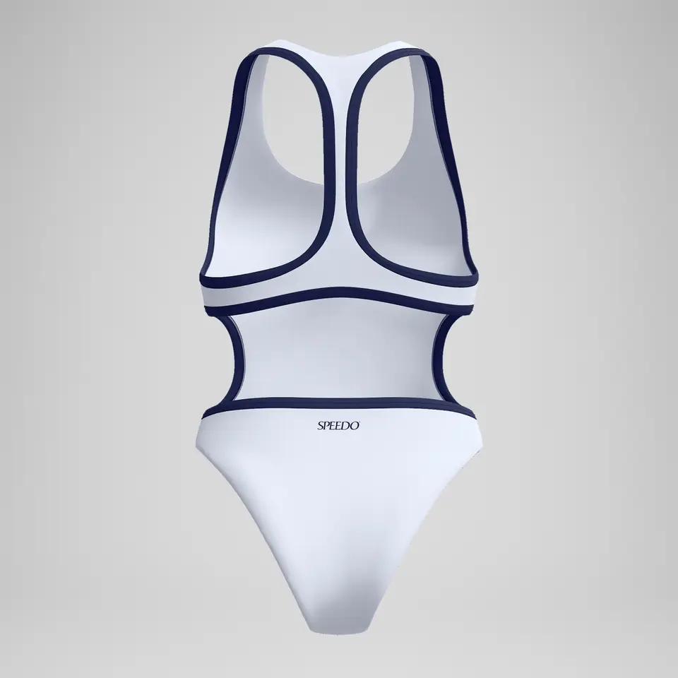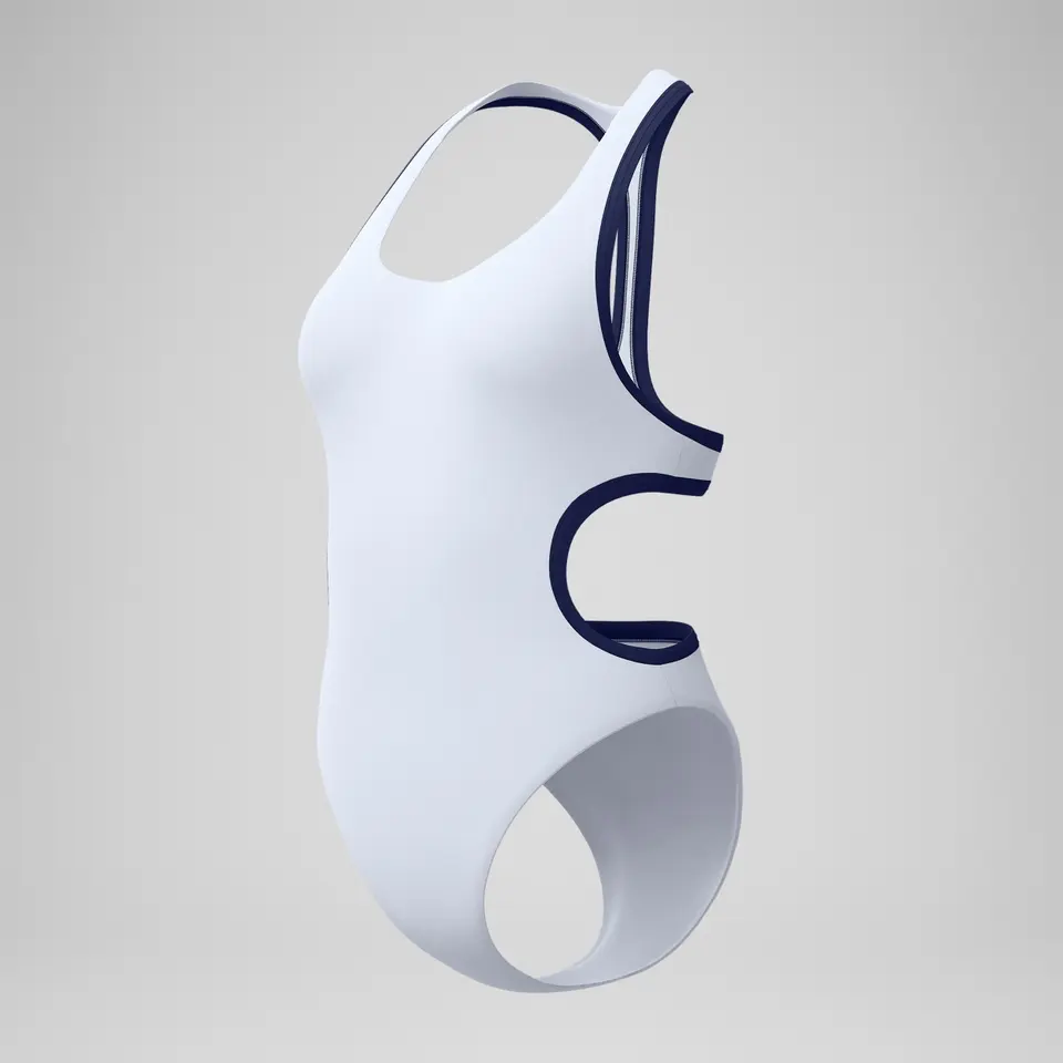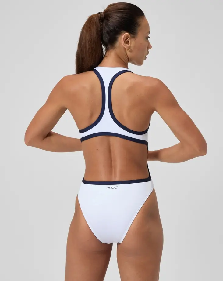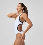 Old-School-Styling, frischer neuer Vibe. Unser neuer Bound Badeanzug verleiht dem Retro-Sport-Styling mit seinem modernen Cut-Out-Rücken einen frischen Touch. Der bequeme, chlorbeständige Stoff füh...