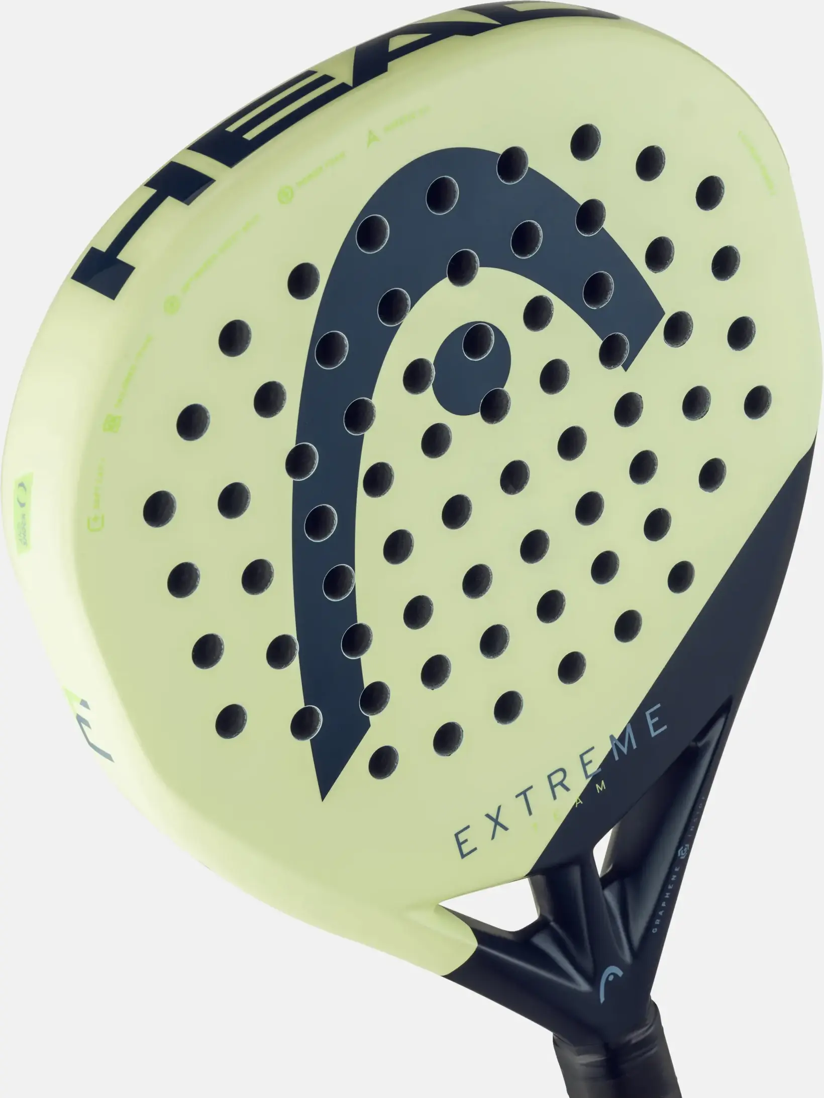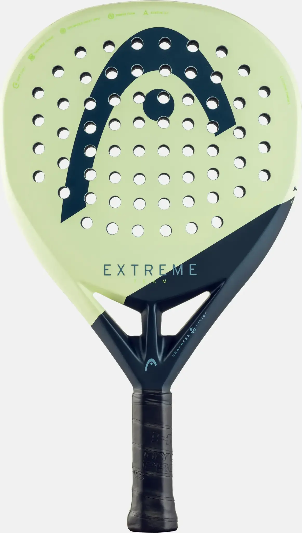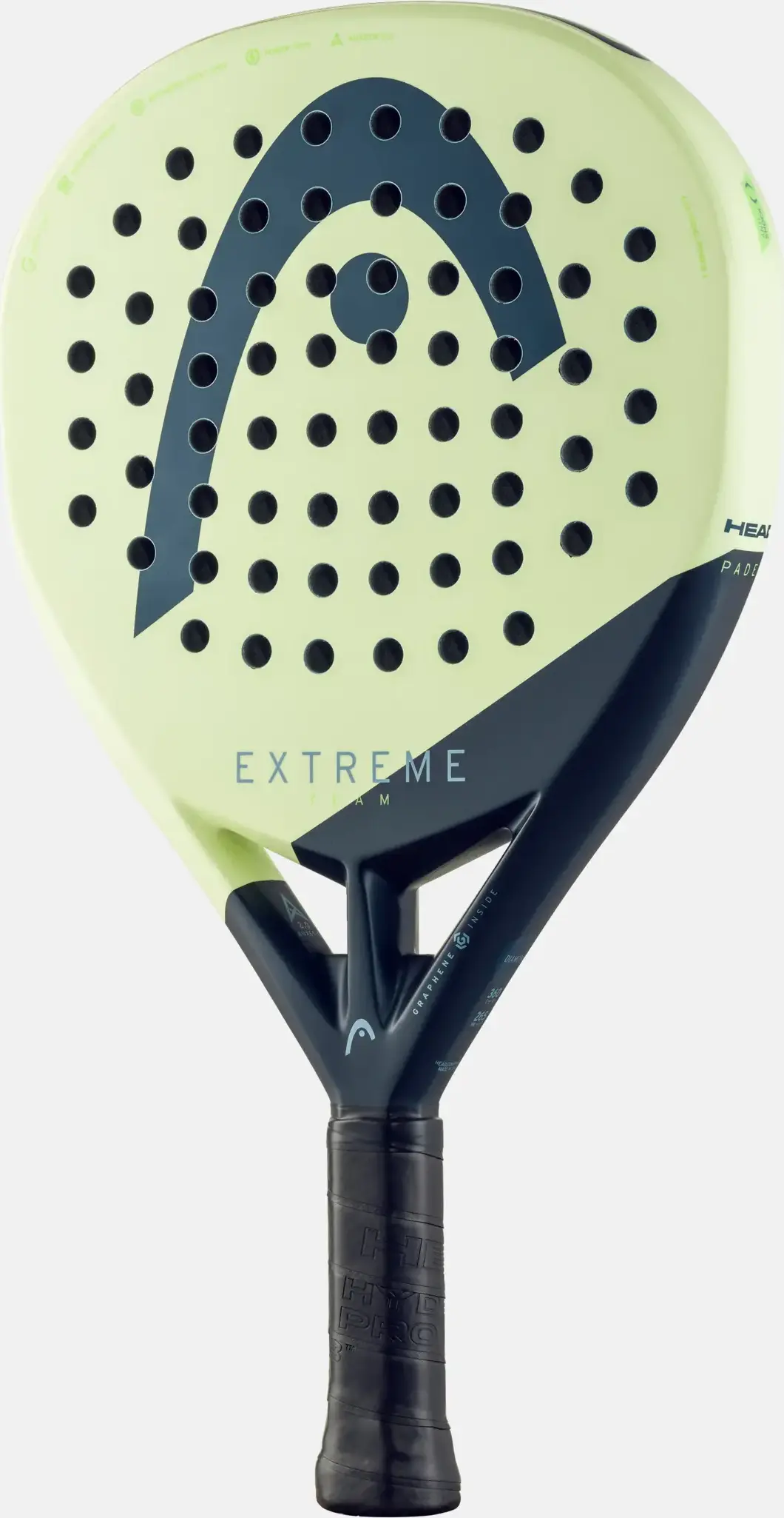 Mit seiner mühelosen Power bei langsamerem Balltempo, hervorragendem Ballabgang und einem weicheren Touch ist der EXTREME TEAM 2025 für fortgeschrittene Spieler gedacht, die in jeder Situation auf dem Platz angreifen möchten und dabei ein komfortables Gefühl beibehalten wollen. Mit einer Schlagfläche aus Fiberglas, die ein weiches Gefühl und einen flexiblen Touch bietet, ist dies der weichste und verzeihendste Schläger in der EXTREME-Serie, mit einer mittelweichen Steifigkeit. Hergestellt mit einer diamantförmigen Form für mehr Power und einer mittelhohen Balance für zusätzlichen Hebel bei Überkopfschlägen, ermöglicht dieses stabile Modell, die Power bei Angriffsschlägen wie Smash, Vibora, x3 und aggressiven Volleys zu erhöhen. Das neue Bohrmuster verbessert den Sweetspot, während der Power Foam bei schnellen Schlägen reaktiv ist und die Auxetic 2.0-Technologie ein sensationelles Schlaggefühl liefert. Das Upgrade umfasst die neue Soft Cap + Technologie mit einem austauschbaren Kordelsystem, das Ihnen ermöglicht, Ihren Schläger individuell anzupassen, während das weiche Material im Griffende erhalten bleibt.