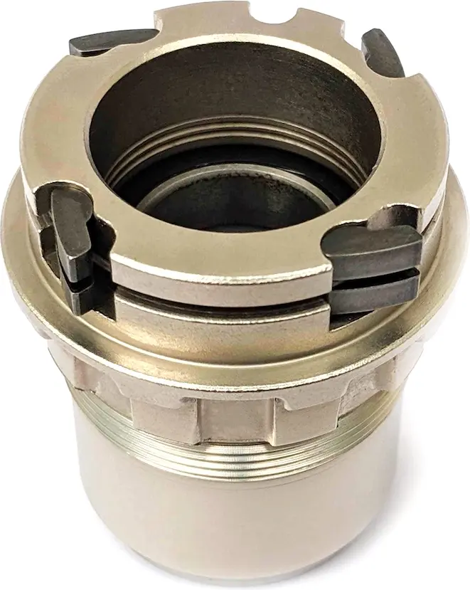 KICKR XDR Freilaufkörper, damit Sie Ihren KICKR mit dem SRAM AXS System verwenden können. Dieses Set enthält ein 1,8-mm-Distanzstück für XD-Kompatibilität, die Original-Feststellschraube und die aktualisierte abgeschrägte Feststellschraube.