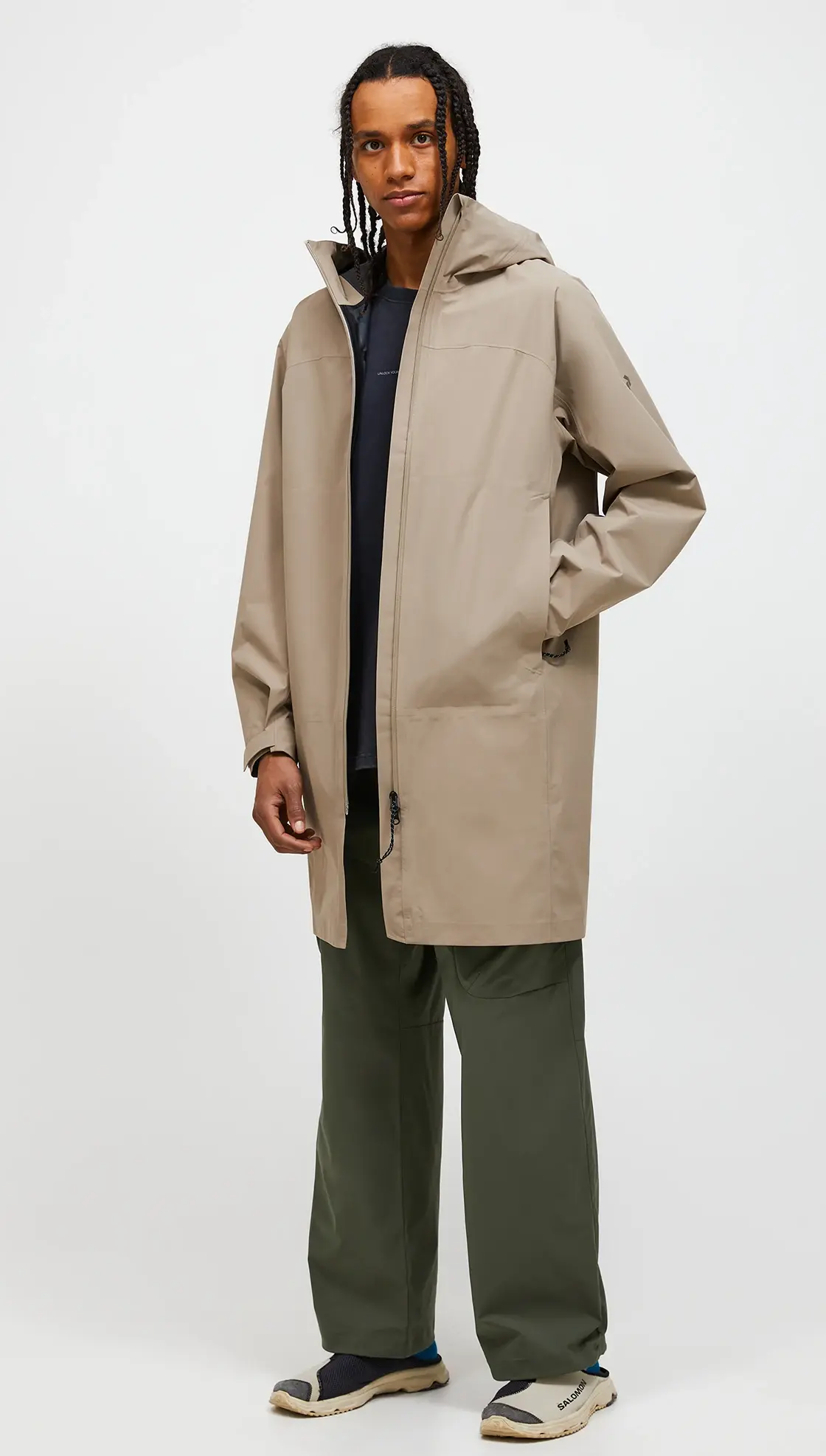 Leichter und vielseitiger Regenparka mit weiter Passform für jede Jahreszeit. Das 2,5-lagige Funktionsmaterial ist sowohl wind- als auch wasserdicht, aber dennoch atmungsaktiv. Freu dich über viele praktische Features wie eine einhändig verstellbare Kapuze, große verdeckte Reißverschlusstaschen und verstellbare Ärmelabschlüsse.