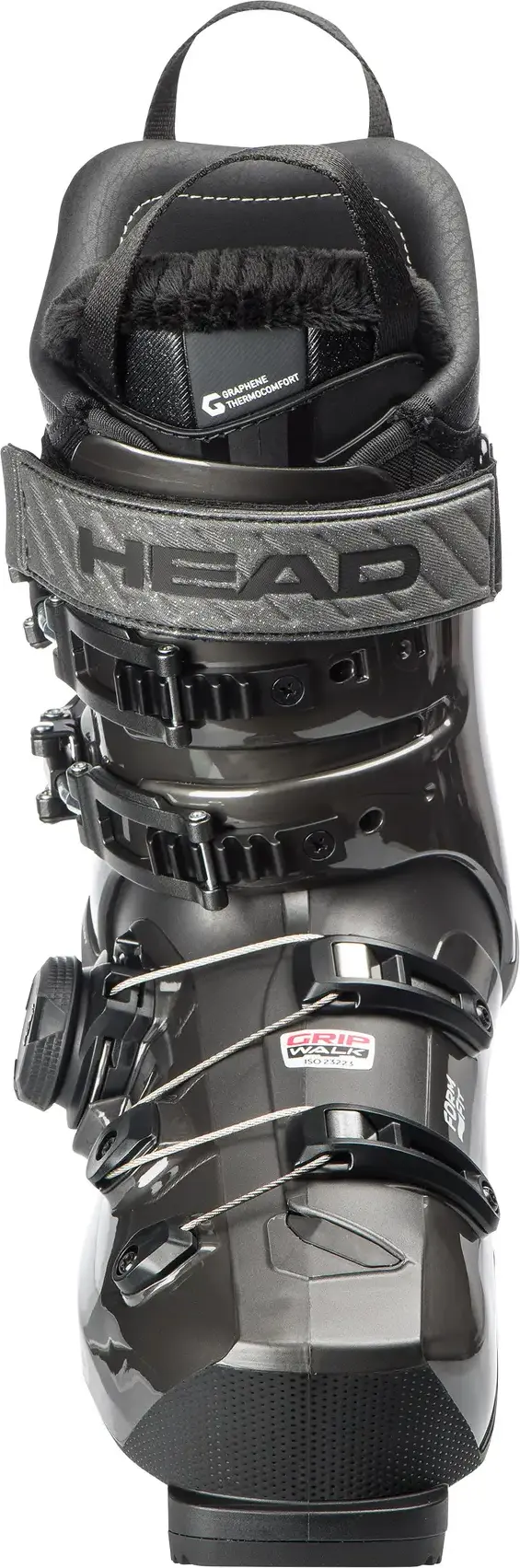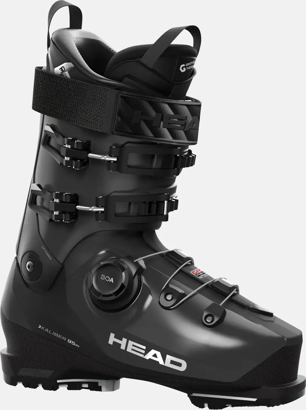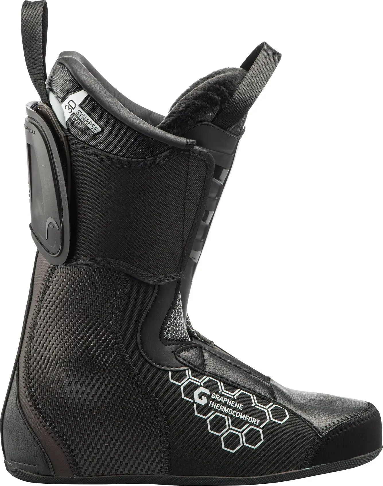 Der Kaliber 95 W MV GW BOA bietet All-Mountain-Skifahrerinnen Präzision und Performance, dank einer neuen Konstruktion mit integriertem Verschlusssystem. Das BOA® Fit System ermöglicht Mikroeinstellungen, um die Umhüllung von Bein und Fuß zu optimieren. Der BI-injizierte Schaft und der Schalenaufbau wurden speziell für BOA entwickelt und verfügen über steiferen Kunststoff im hinteren Bereich für mehr Kraft, sowie weicheren Kunststoff und eine gewinkelte Überlappung über dem Fuß. Der mittelbreite 100-mm-Leisten sorgt für einen anatomischeren Sitz, während der neu gestaltete Synapse Pro Liner Graphene enthält, um die Temperatur zu regulieren.