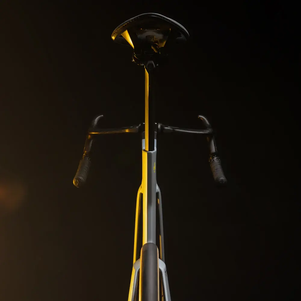 Die Integration von Vorbau und Gabel (Dual-Crown Gabel + Integrated Stem) sorgt für eine besonders stabile Front – wichtig für Sprints und hohe Geschwindigkeiten.