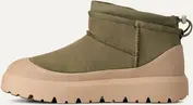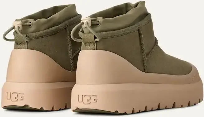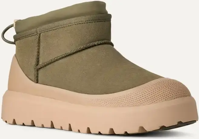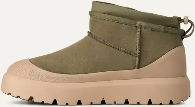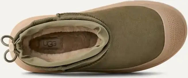 Der Classic Ultra Mini Weather Hybrid ist eine Neuinterpretation des UGG® Classic. Mit seinem wasserdichten Wildleder und den versiegelten Nähten ist er noch vielseitiger. Diese Version des Classic Ultra Mini hat den gleichen kurzen Schaft, ist aber mit einem Knebelverschluss versehen, damit kein Matsch und Schnee eindringt.