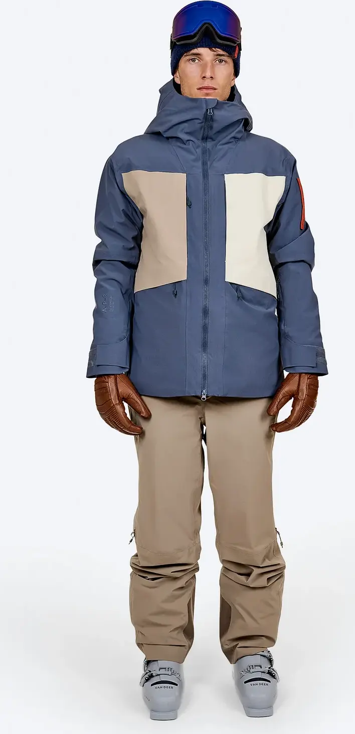 Hybrid shell jacket built for freeride and resort skiing. The Z-5 jacket features The Mountain Studio’s proprietary ALP-3 membrane technology, combined with 20g lightweight insulation. The jacket is light and durable, like a shell, with just a touch of insulation that makes it a perfect hybrid for any day in the mountains. The ALP-3 technology is a PFAS-free, hydrophilic membrane that delivers some of the best waterproof and breathability ratings in the industry, combined with a stretch fabric for enhanced mobility and comfort. The jacket features two large chest pockets, alongside two hand pockets, to store essentials while out on the mountain. Underarm ventilation zippers allow for quick airflow adjustments and the release of excess body heat. An internal snow skirt keeps wind and fresh snow from sneaking in from underneath, cooling you down. A large, helmet-compatible hood adds an extra layer of protection from the elements when needed. The Z-5 jacket is the perfect choice for the resort-based skier who needs full coverage against all imaginable weather conditions.