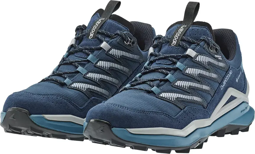 Für Abenteuerlustige und Adrenalinjunkies ist der MADDOX PRO GTX LO das Ticket zu unvergleichlicher Performance und Agilität. Egal ob steile Steigungen, dichte Wälder oder roughes Mittelgebirgsterrain - der Leichtwanderhalbschuh hält dynamisch Schritt. Seine Passform beeindruckt wie die einer zweiten Haut, die scharf profilierte LOWA® FAST HIKING-Sohle liefert hervorragenden Grip. Das bewährte Zwischensohlensystem aus LOWA® DYNAPU® als auch das leichte, atmungsaktive Ripstop-Obermaterial gewährleisten ein sportliches Maß an Flexibilität - sodass der MADDOX PRO GTX LO gediegenere Tempi als auch dynamische Fast-Hiking-Passagen problemlos meistert. Dank einer GORE-TEX Membran ist er darüber hinaus absolut wasserdicht. Das Naturell des Schuhs spiegelt sich auch in seinem optischen Auftritt wider: Mit dem scharfkantigen, präzisen Design ist der MADDOX PRO GTX LO ein wahrer Eyecatcher und setzt einen spannenden Akzent im Segment dynamischer Light-Hiking-Halbschuhe.