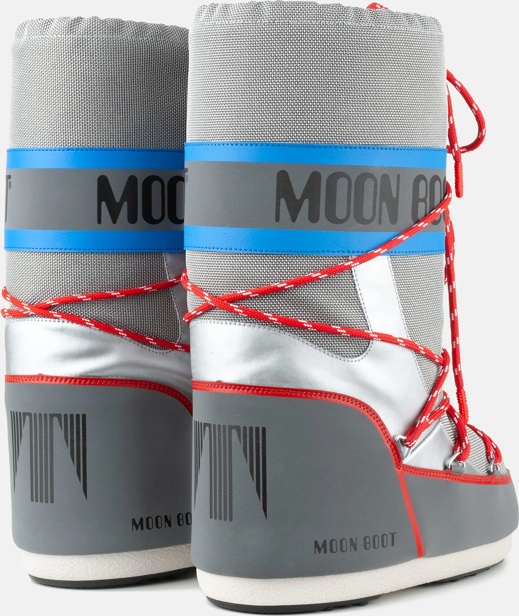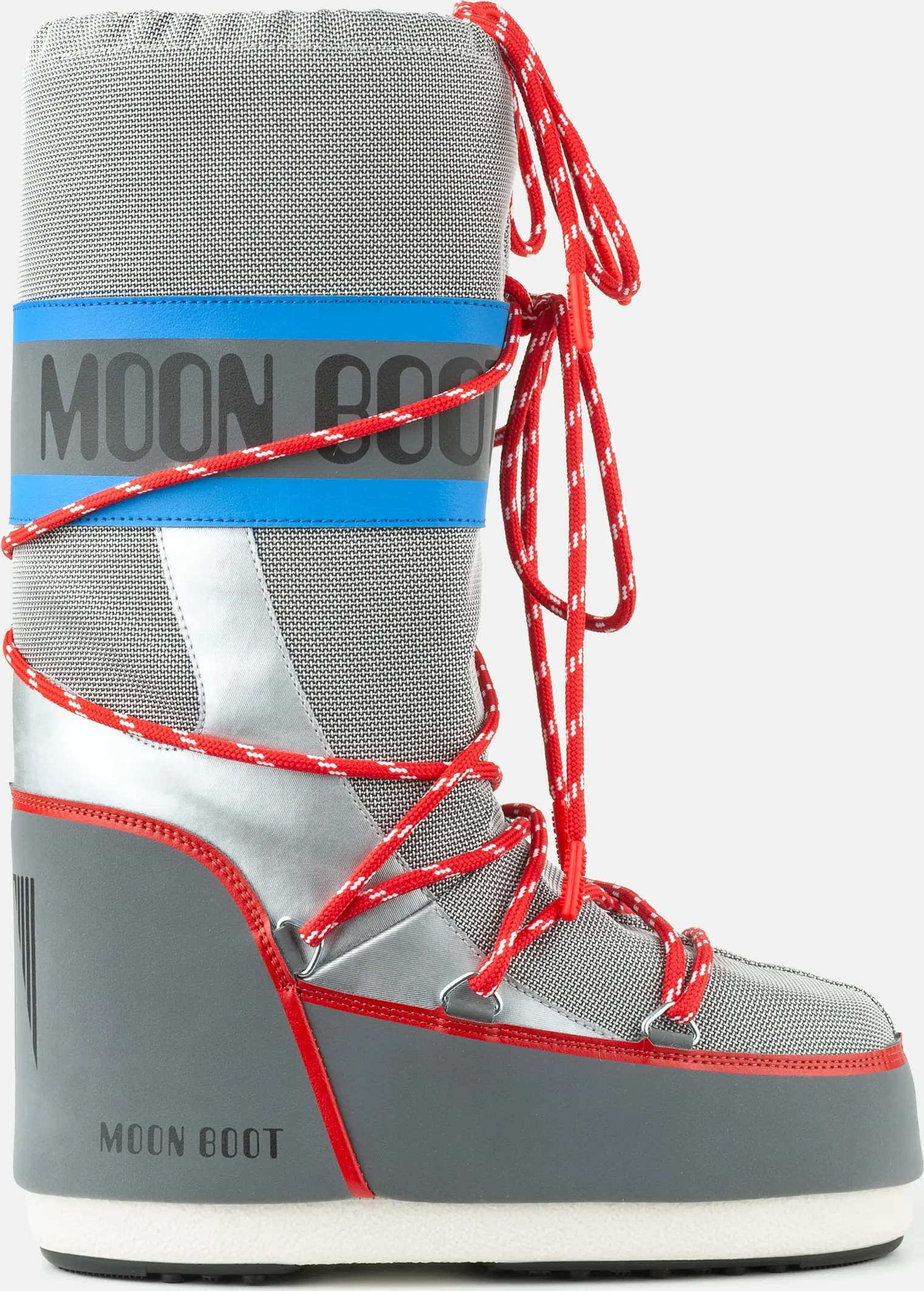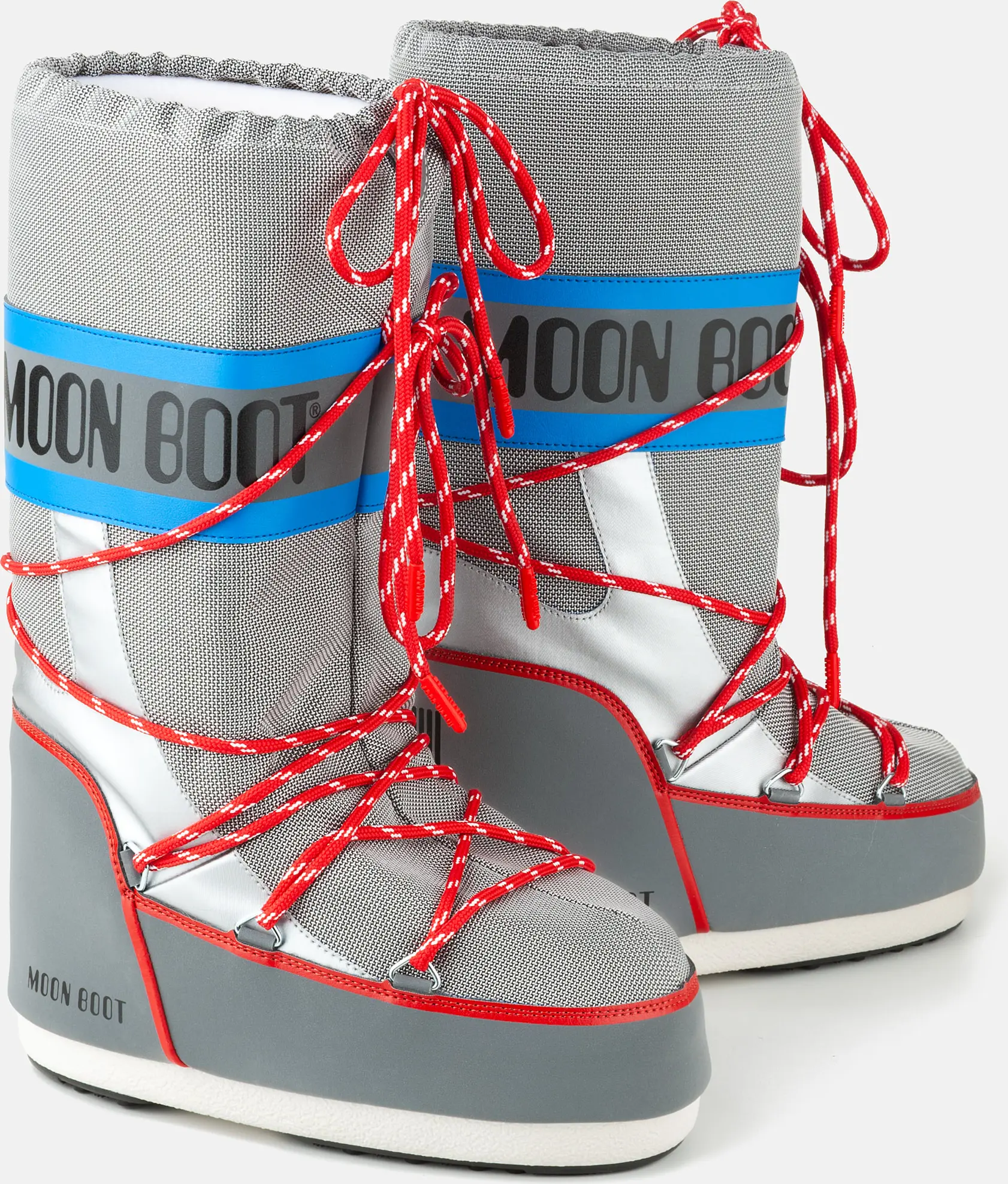 Bereit für den Abflug: Der Icon Space Racing Stiefel bringt in dieser auffälligen silbernen, roten und blauen Farbgebung interstellaren Stil auf die Straße. Mit allen Merkmalen des Originals – gepolsterte Wärmedämmung, leichte Zwischensohlen und Saugnäpfe für hervorragende Bodenkontrolle – die voluminöse kniehohe Silhouette bietet Wärme, Komfort und furchtloses Flair, einen Schritt nach dem anderen.