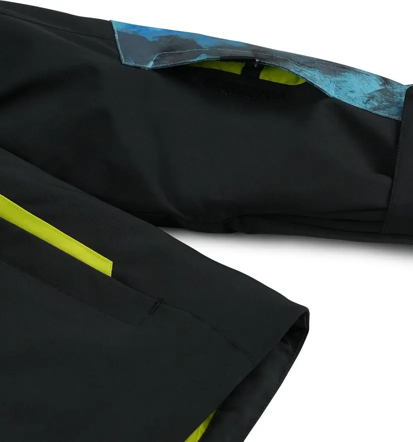 This Challenger includes all the bells and whistles: reflective detailing, data card, goggle pocket, removable hood with inner hood gaiter, taped seams, and a powder skirt with snaps and elastic grip. Featuring a 10k/10k stretch recycled EXO SHIELD fabric with DWR and EXO THERMO insulation (120g), the Challenger Jacket lets the little guys forget the cold and take on any part of the mountain.