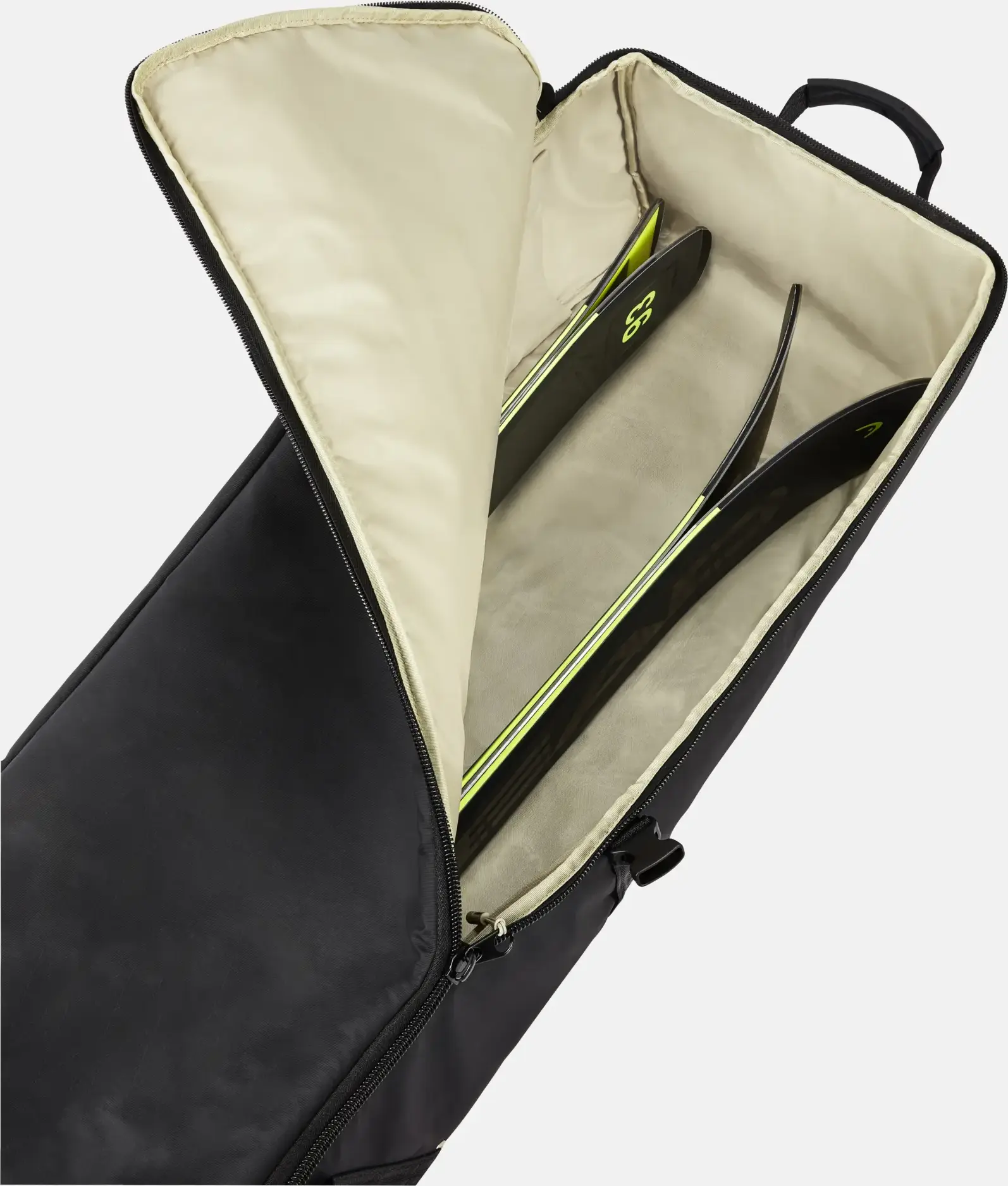 Bereise die Welt im KORE Style. Die Freeride Double Skibag bietet genug Stauraum für zwei deiner Freeide Ski. Durch eine große Öffnung lassen sich die Ski einfach verstauen und entnehmen. Im Innenraum sorgen zwei Riemen dafür, dass deine Stöcke sicher verstaut bleiben. Und dank dem großen Griff kann die Freeride Double Skibag problemlos mit der Freeride Travel Bag kombiniert werden.