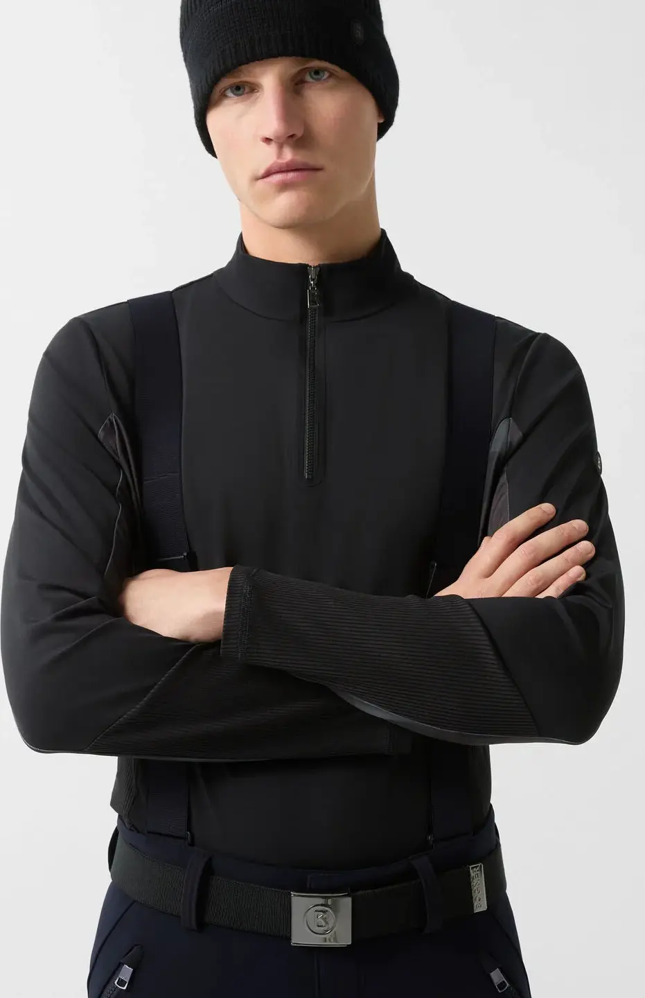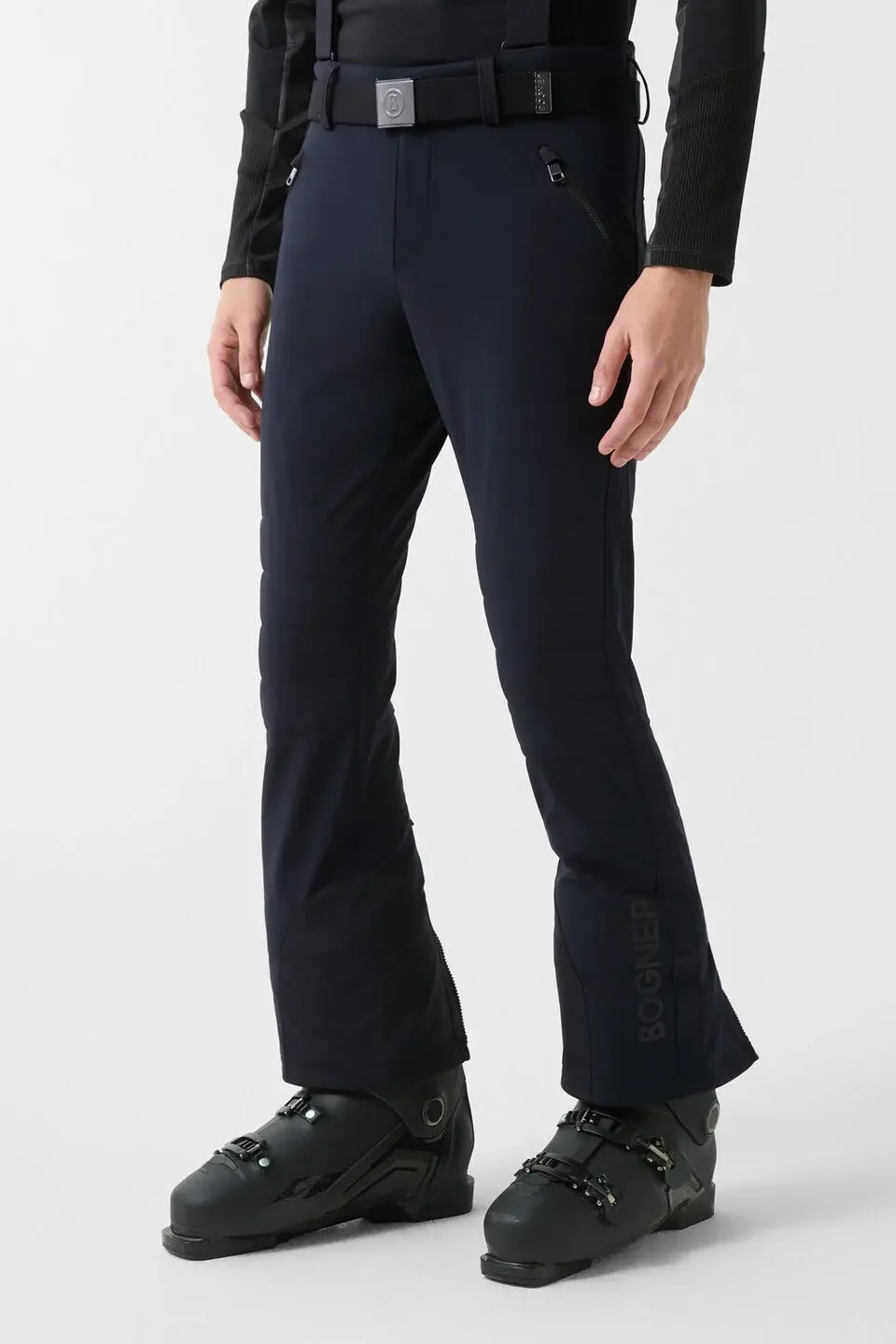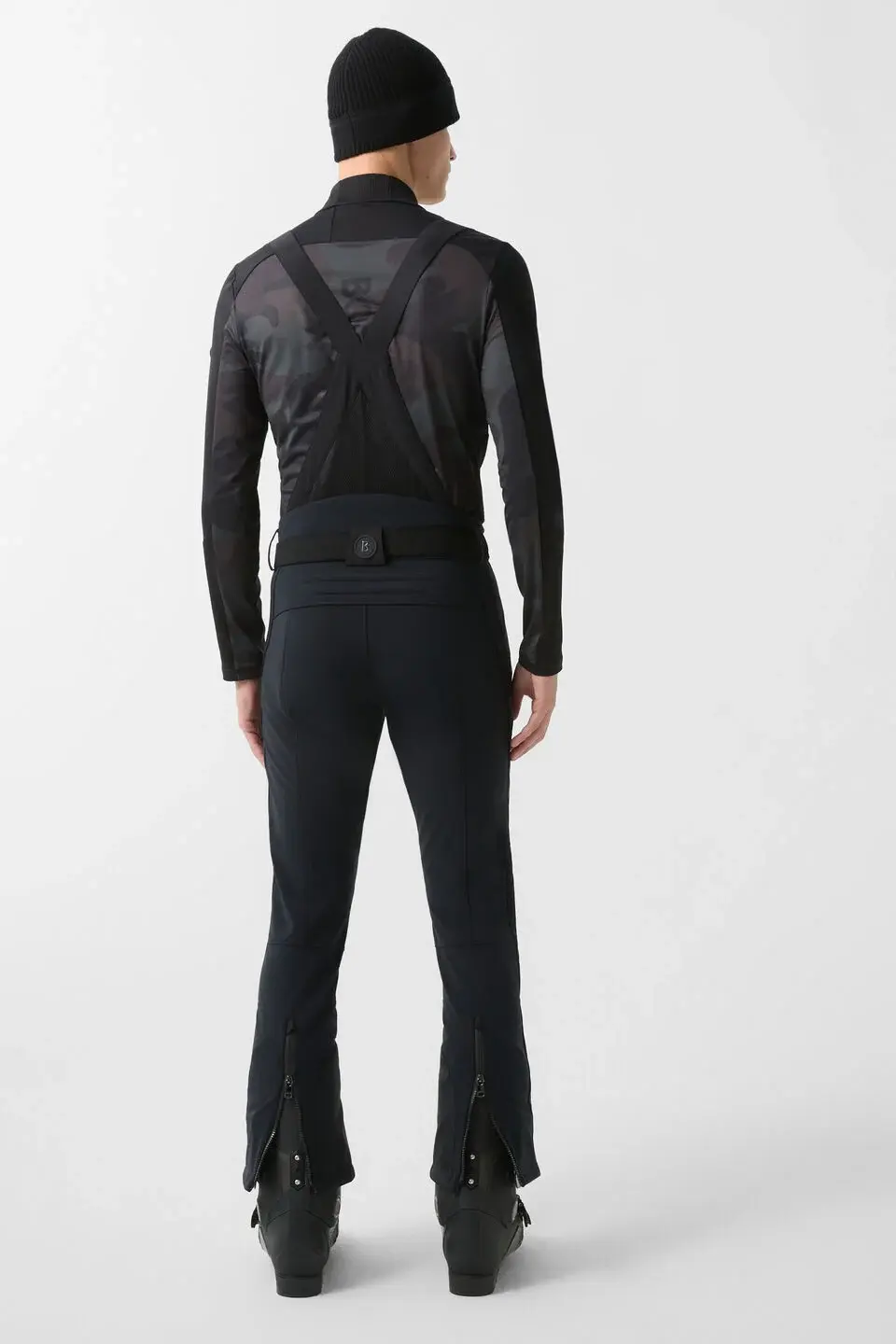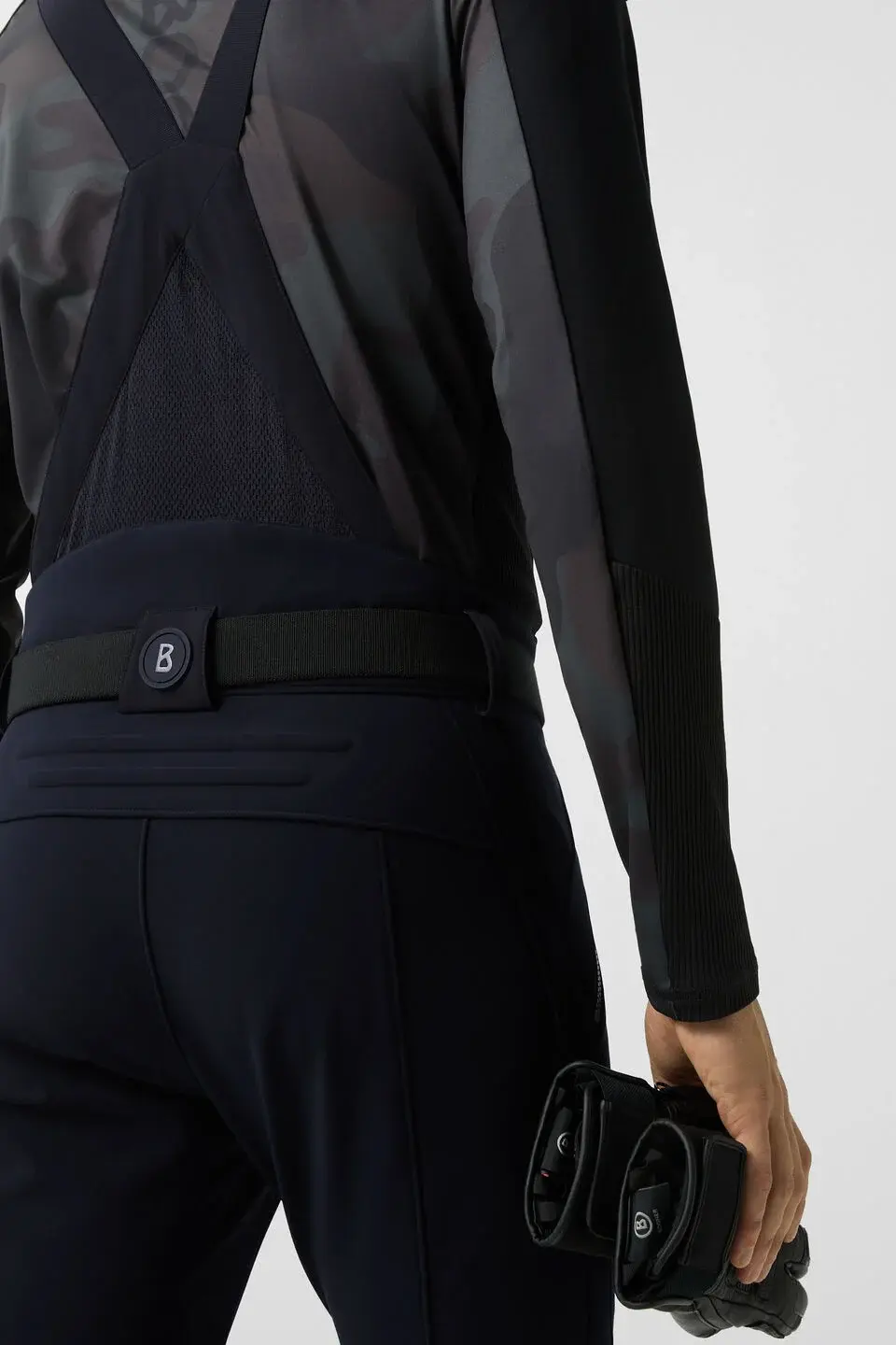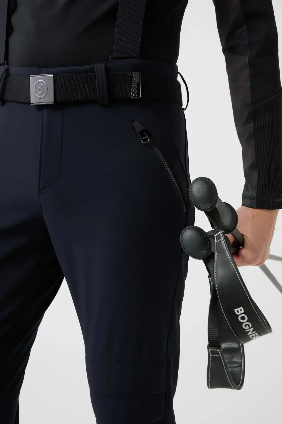 Die Skihose Curt zeichnet sich durch die dreilagige Softshell-Verarbeitung mit wasserdichten Eigenschaften aus, ergänzt durch abzippbare Hosenträger. Für den funktionalen Style sorgen Hosenbeinabschlüsse mit Kantenschutz und Schneefang sowie abgesteppte Kniepartien. Der elastische Gürtel und seitliche Zippertaschen runden das Piece ab.