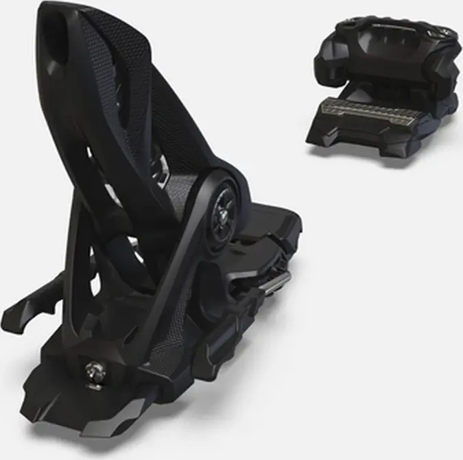Die Vorderbacken-Konstruktion mit DIN/ISO 8.0 - 18.0 ermöglicht beeindruckende Haltekräfte beim Freeriding. Die Feder im Vorderbacken ist quer gelagert, der um 5° geneigte Sohlenhalter bietet höchste Energieabsorption, um Fehlauslösungen zu reduzieren. Die große Auflagefläche optimiert die Kraftübertragung und erlaubt größte Beanspruchungen. Vorderbacken mit dieser Technologie erreichen damit in der Relation zu ihrem Gewicht eine nie dagewesene Leistungsfähigkeit.